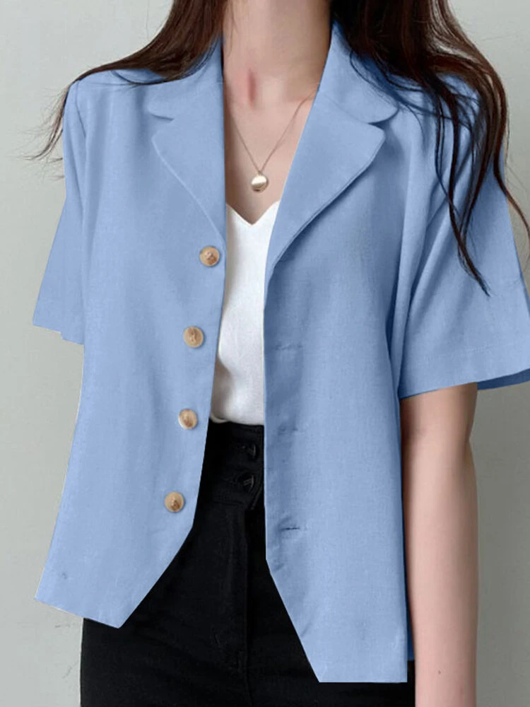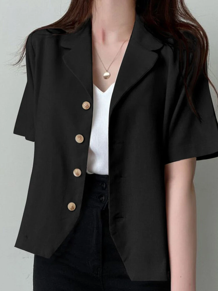 Solid Button Front Lapel Short Sleeve Casual Blazer