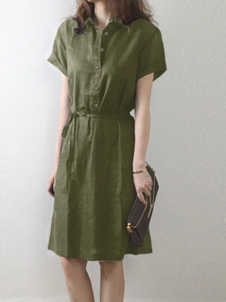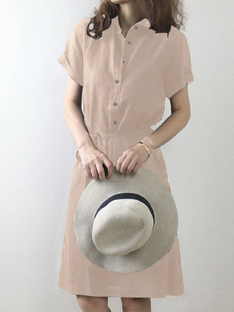 Be the first to review “Solid Button Front Lapel Short Sleeve Dress With Belt” Cancel reply