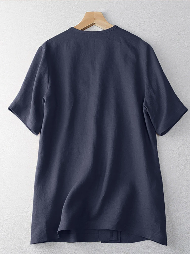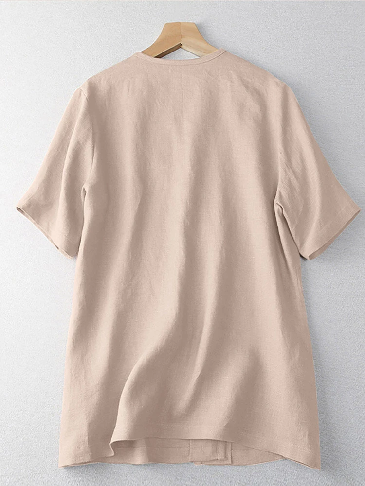 Color: Pink, Orange, Navy, Apricot Material: Linen, Polyester Pattern: Plain Occasion: Everyday Style: Casual Sleeves Length: Short Sleeve Collar: V-neck Season: Summer Design Element: Button Front Package Included:1*Blouse