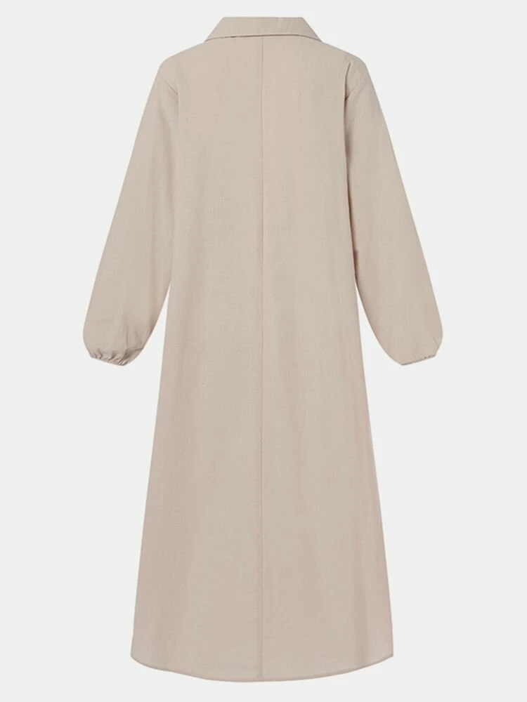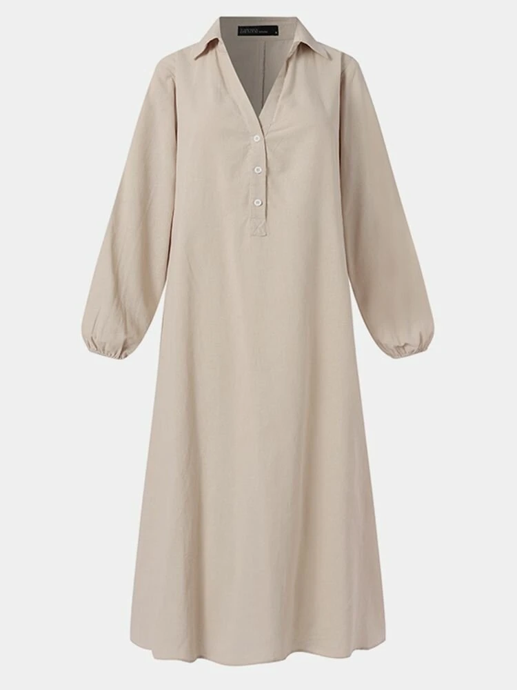 Color: Khaki Style: Casual Material: Cotton, Linen Season: Spring, Autumn Collar: Lapel Collar Sleeves Length: Long Sleeve Package Included:1*Dress
