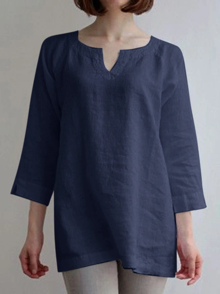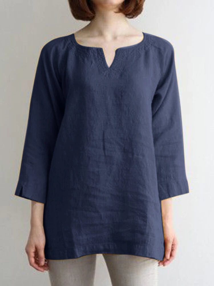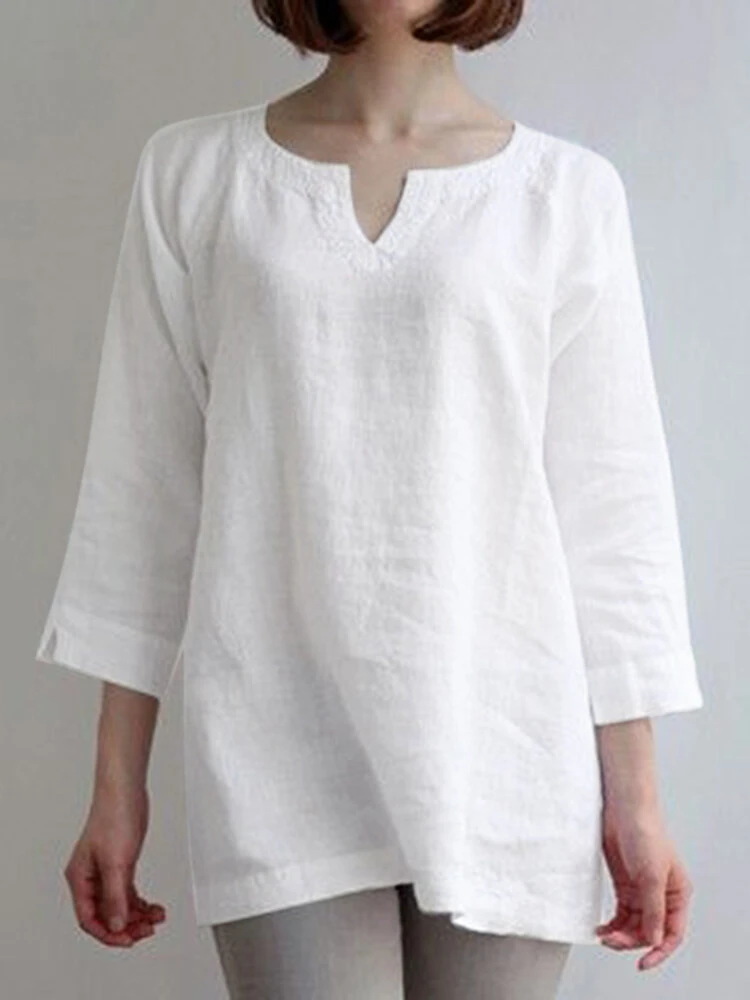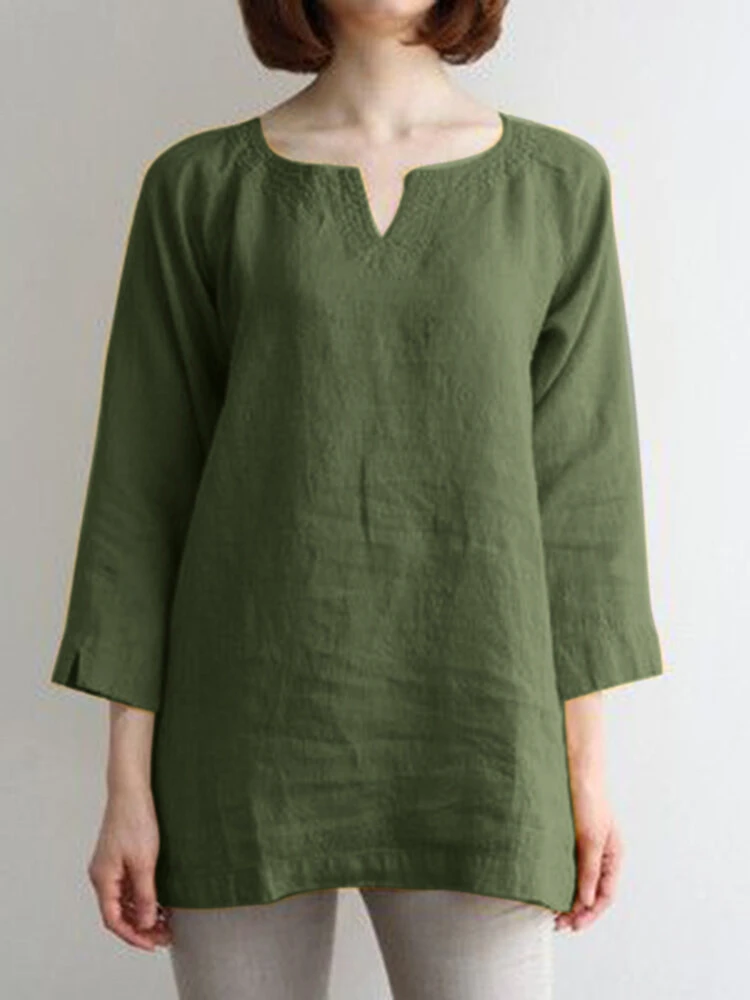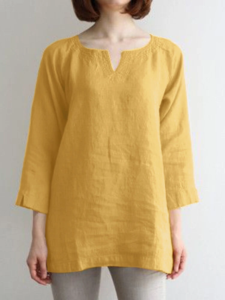Color: White, Blue, Dark Green, Yellow Material: Cotton, Linen Pattern: Plain Occasion: Everyday Style: Casual Sleeves Length: 3/4 Length Sleeve Season: Autumn Package Included:1*Blouse