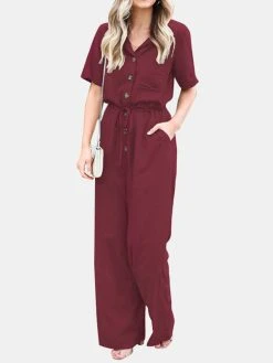 Be the first to review “Solid Color Lapel Collar Button Short Sleeve Jumpsuit With Pocket” Cancel reply