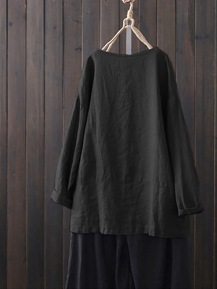 Color: Black Occasion: Casual Sleeves Length: Long Sleeve Season: Autumn, Spring Material: Cotton Package included:1*Blouse