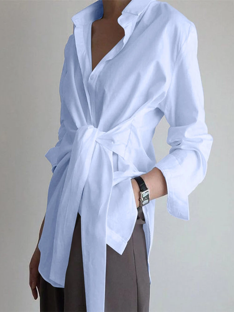 Solid Color Wrap Lapel Long Sleeve Shirt For Women
