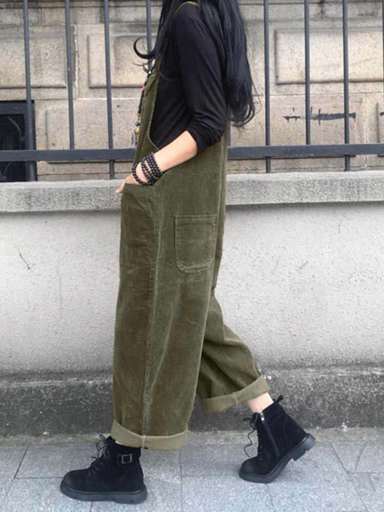 Be the first to review “Solid Corduroy Pocket Casual Sleeveless Wide Leg Jumpsuit” Cancel reply