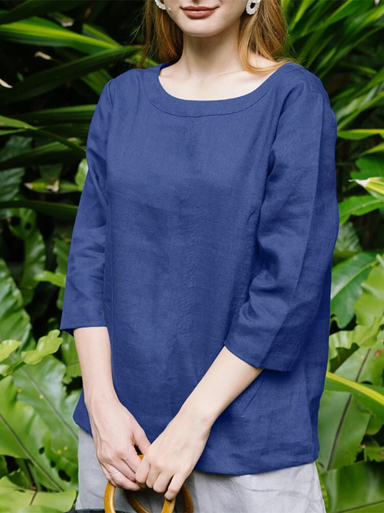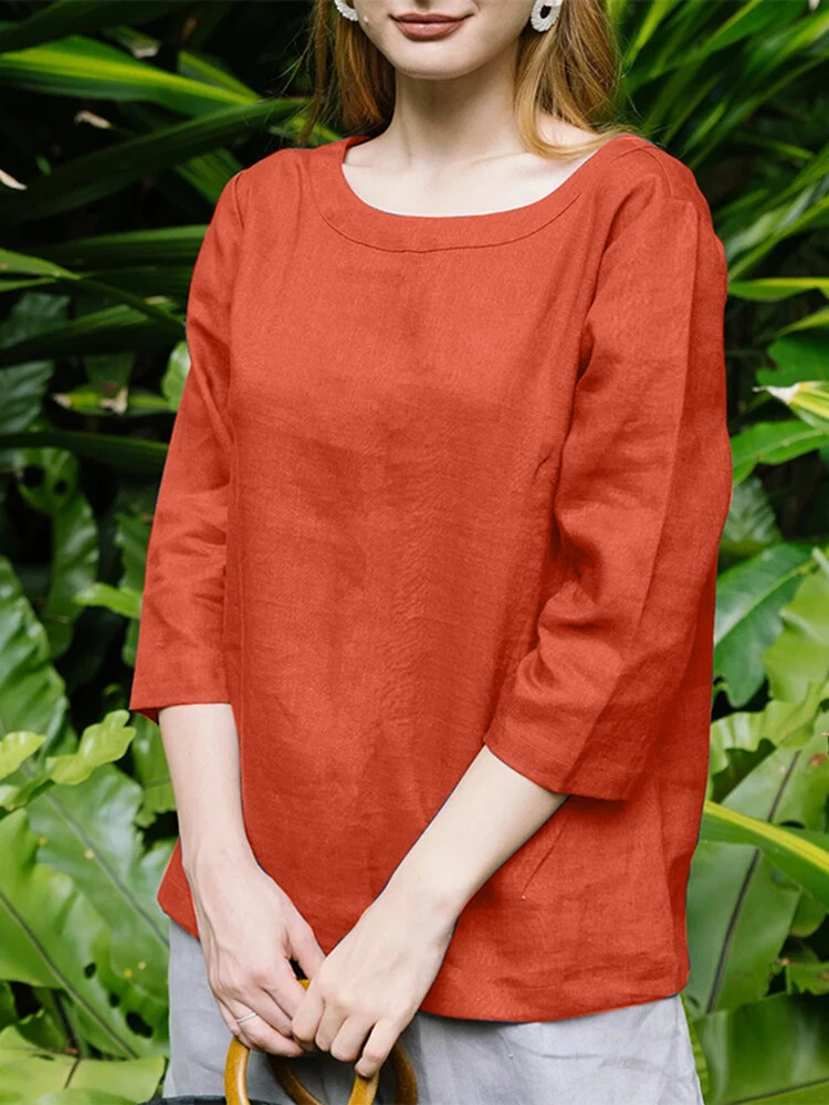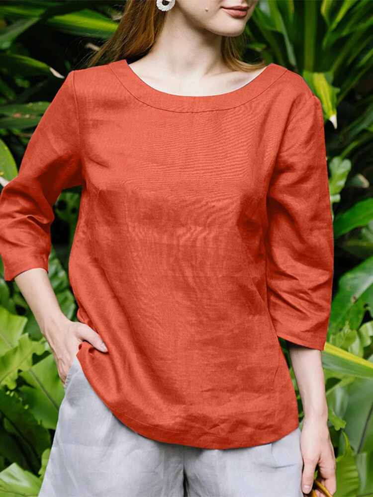 Color: Orange, Navy, Yellow Material: Cotton, Linen Pattern: Plain Occasion: Everyday Style: Casual Sleeves Length: 3/4 Length Sleeve Collar: Crew Neck Season: Autumn Package Included:1*Blouse