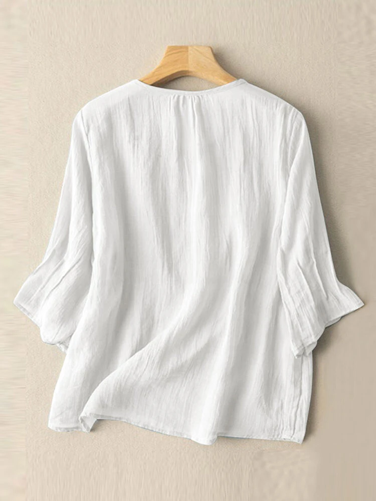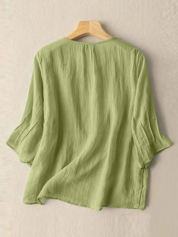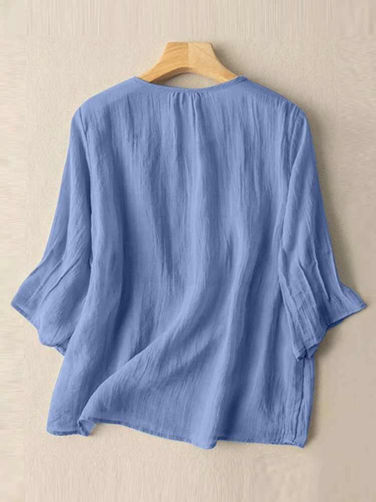 Solid Crew Neck Casual Women 3/4 Sleeve Blouse