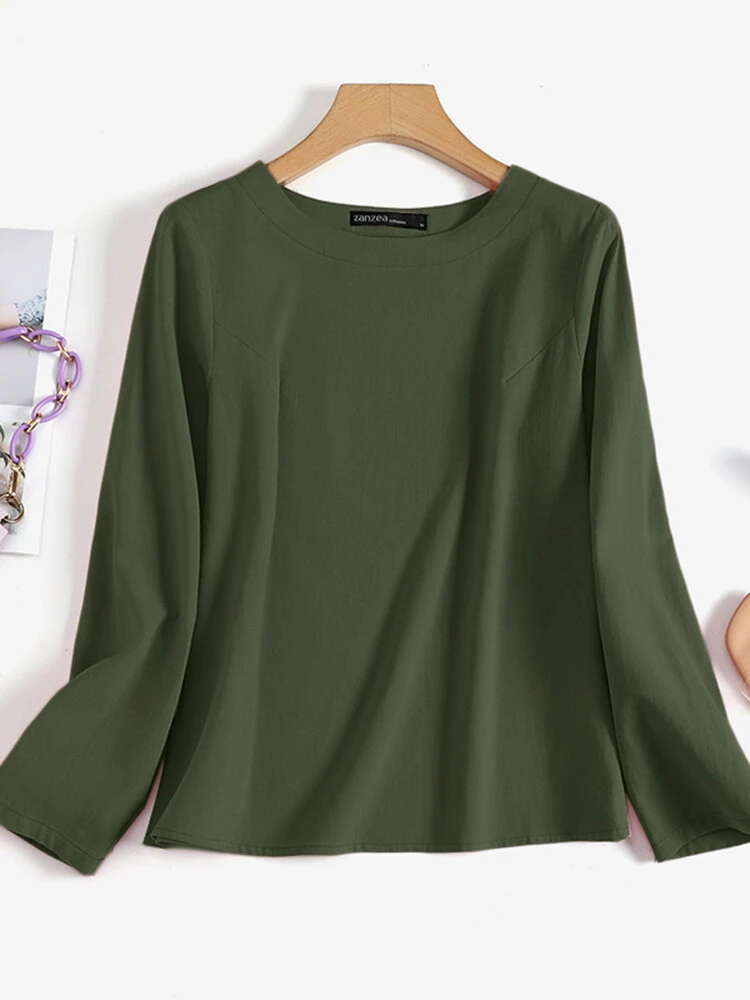 Color: Dark Green, Khaki, Pink, Blue Occasion: Everyday Material: Cotton, Linen Pattern: Plain Style: Casual Sleeves Length: Long Sleeve Collar: Crew Neck Season: Autumn, Spring Package Included:1*T-shirt