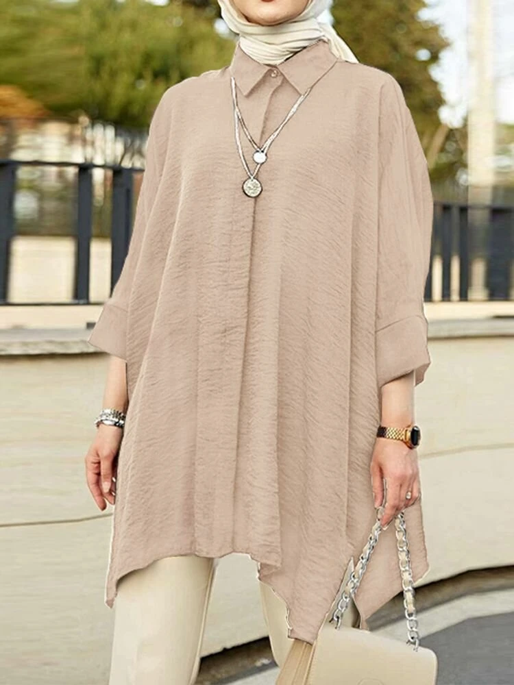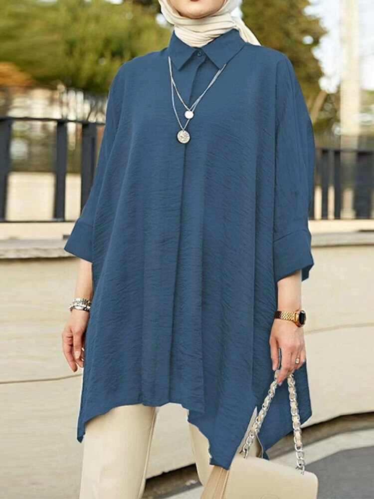Solid Dolman Sleeve Lapel Loose Irregular Buttton Down Shirt