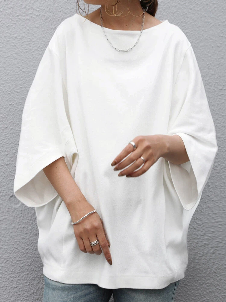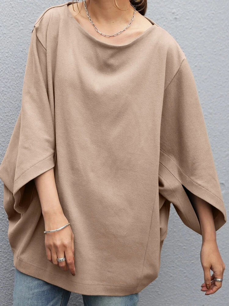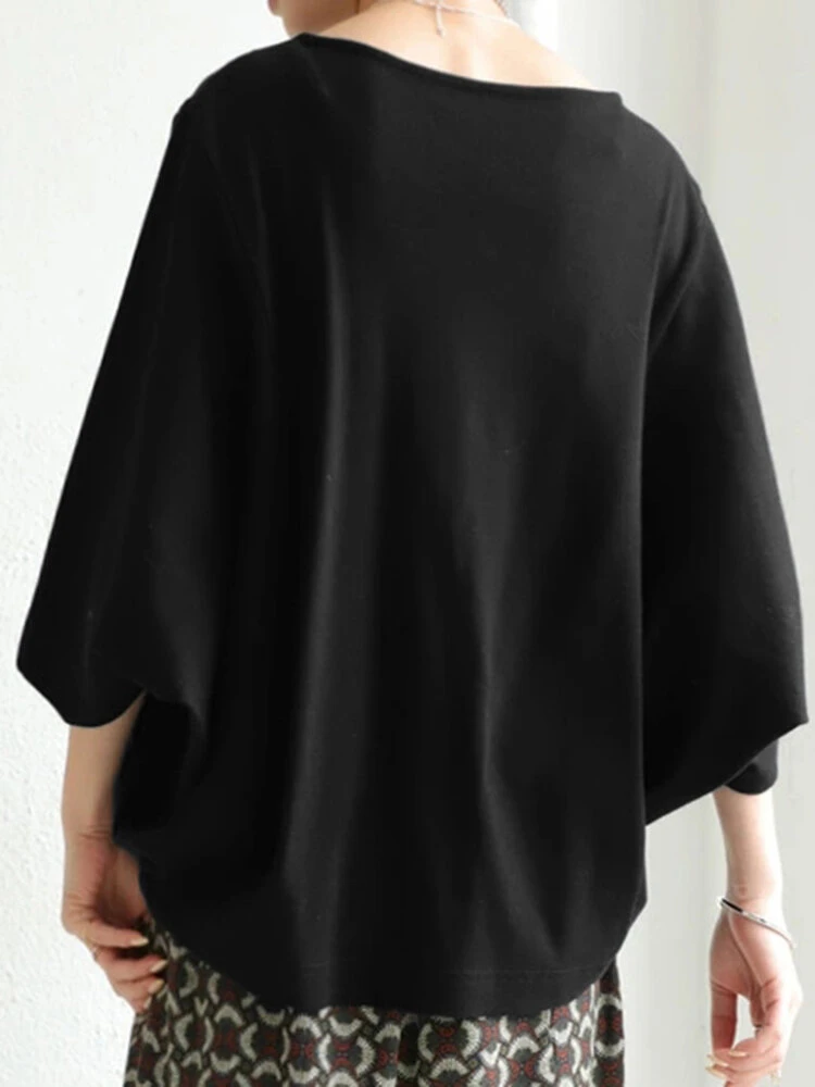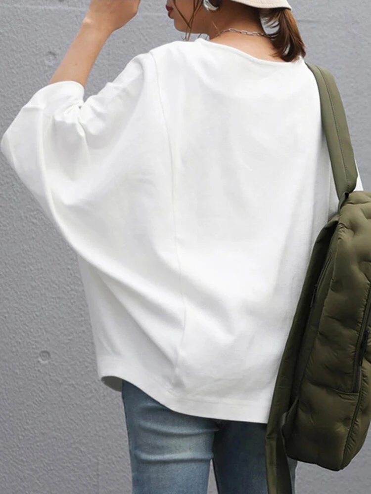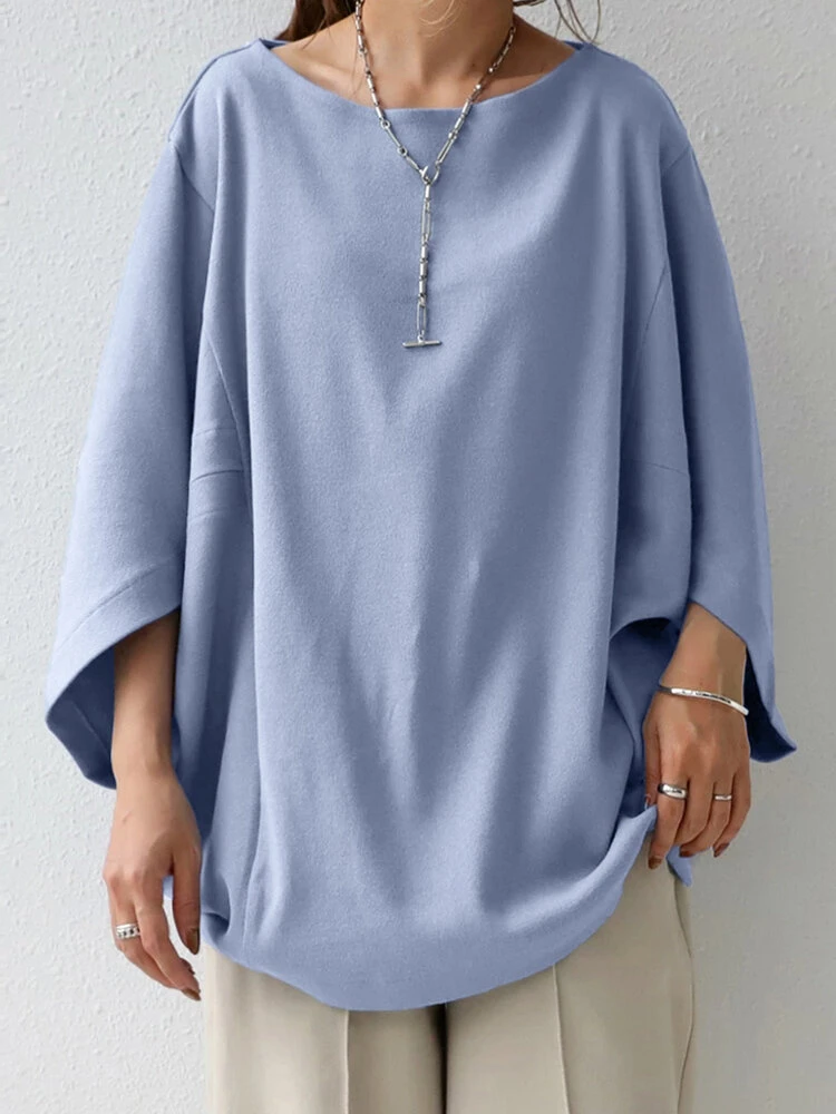 Solid Dolman Sleeve Loose O-neck Casual Women Blouse