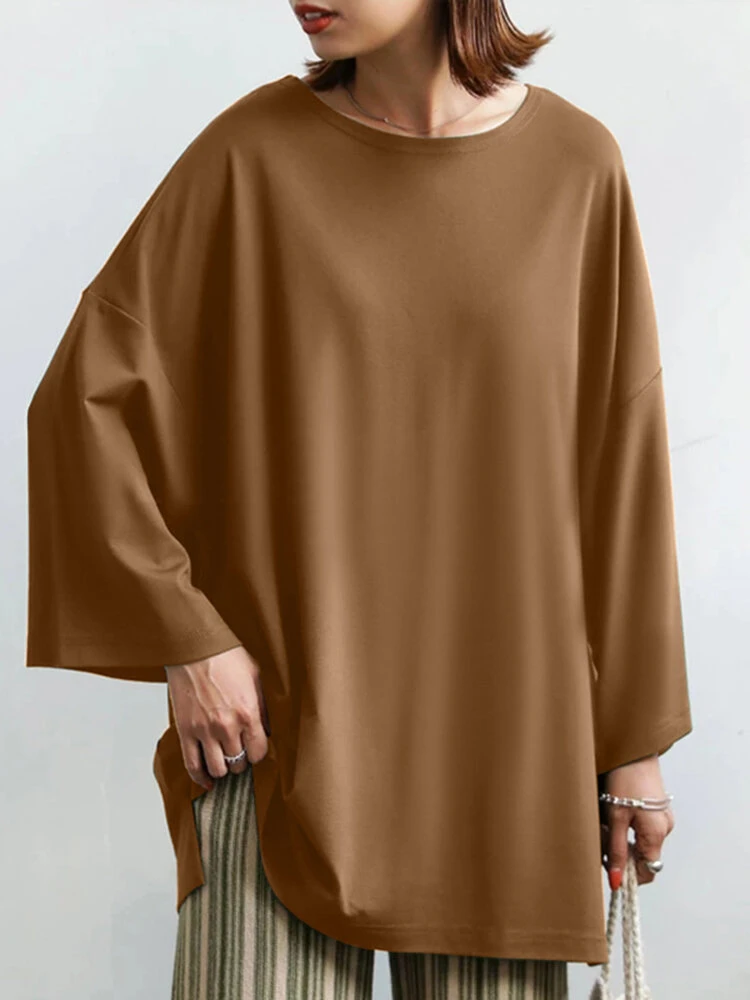 Color: Dark Green, Brown, Black, White Occasion: Everyday Material: Polyester Pattern: Plain Style: Casual Sleeves Length: Long Sleeve Collar: Crew Neck Fit Type: Loose Season: Autumn, Spring Hem Design: Slit Hem Package Included:1*Sweatshirt