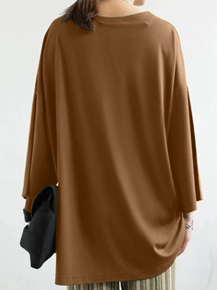 Solid Drop Shoulder Loose Long Sleeve Crew Neck T-shirt