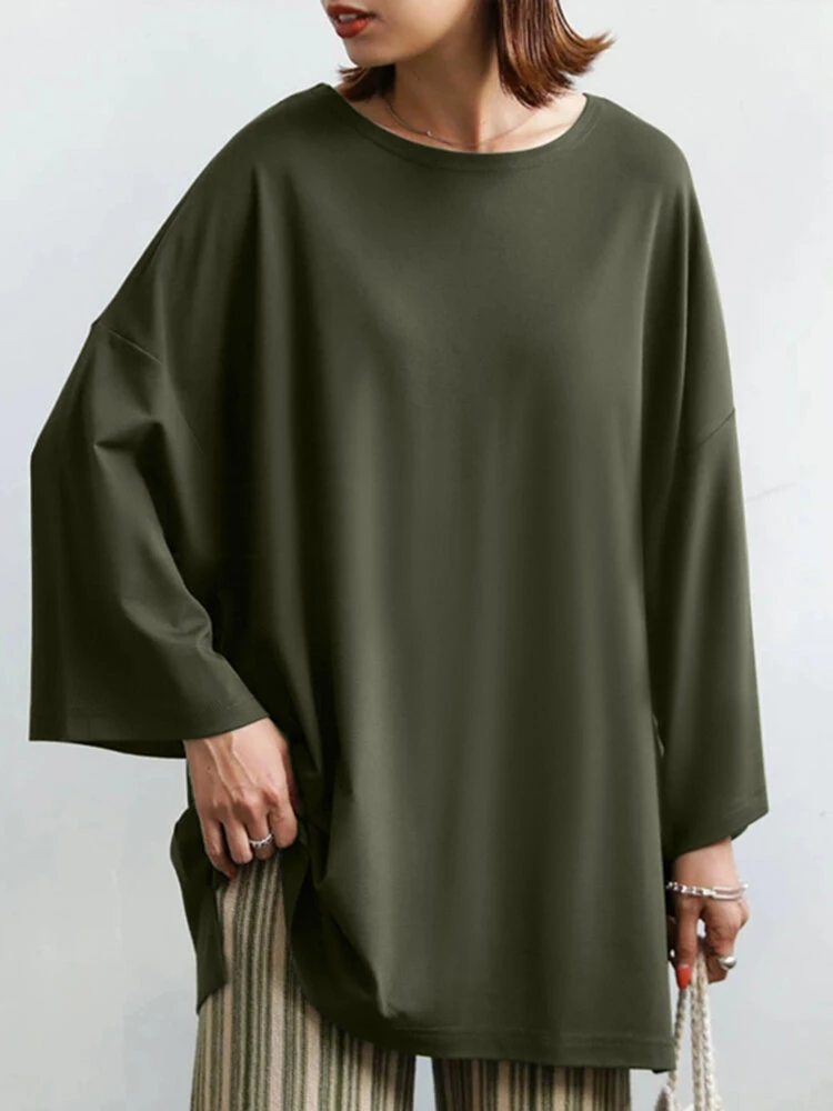 Be the first to review “Solid Drop Shoulder Loose Long Sleeve Crew Neck T-shirt” Cancel reply