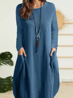 Be the first to review “Solid Dual Pocket Long Sleeve Crew Neck Vintage Dress” Cancel reply