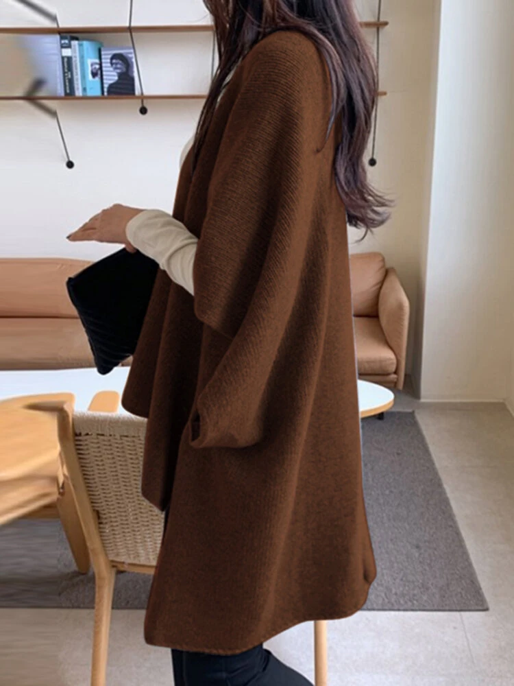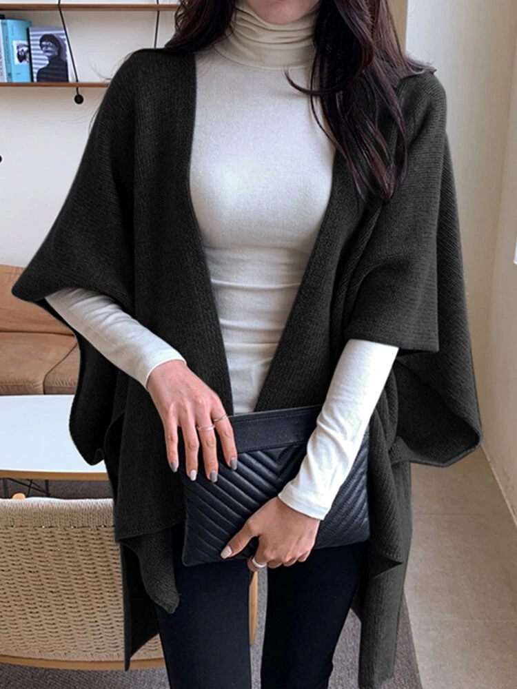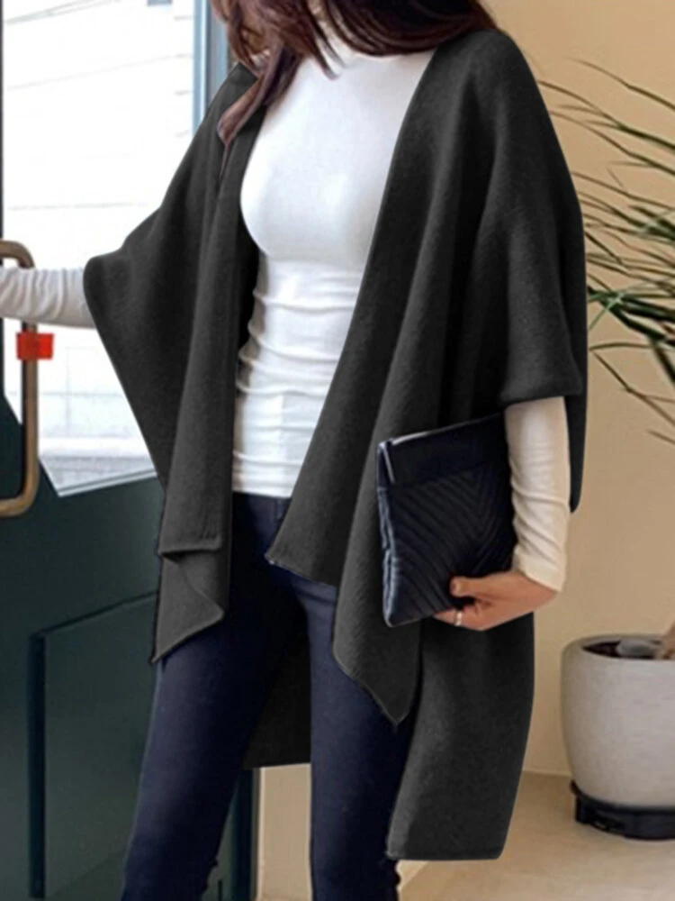 Solid Half Sleeve Cloak Slit Open Placket Cardigan