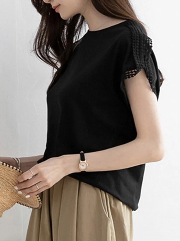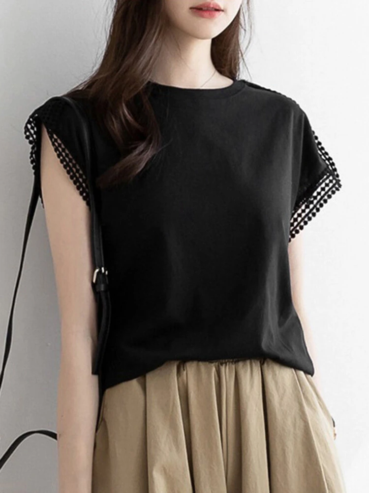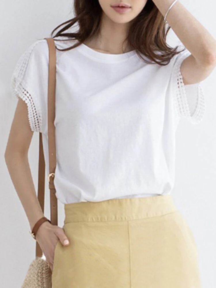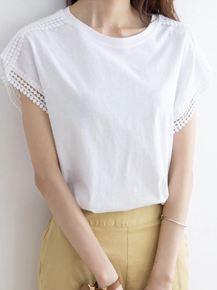 Be the first to review “Solid Lace Trim Stitch Crew Neck Short Sleeve T-shirt” Cancel reply