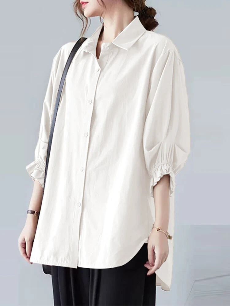 Solid Lapel 3/4/ Sleeve Button Front Casual Shirt