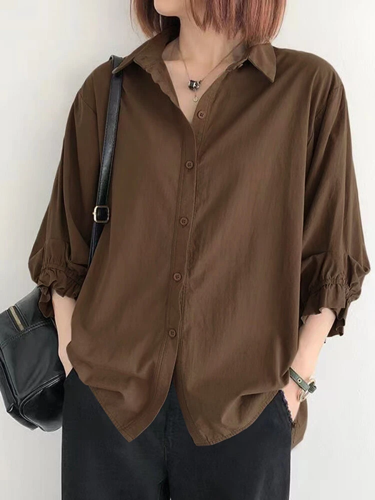 Color: White, Brown, Black Material: Polyester Style: Casual Sleeves Length: 3/4 Length Sleeve Collar: Lapel Collar Season: Autumn, Spring Package Included:1*Shirt