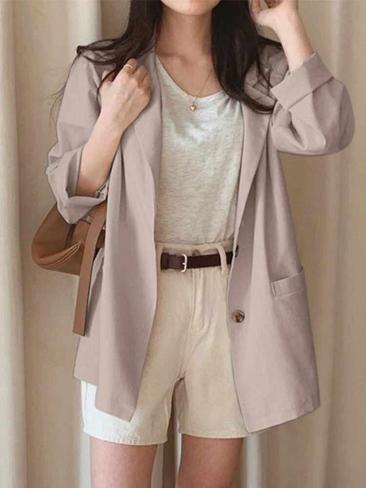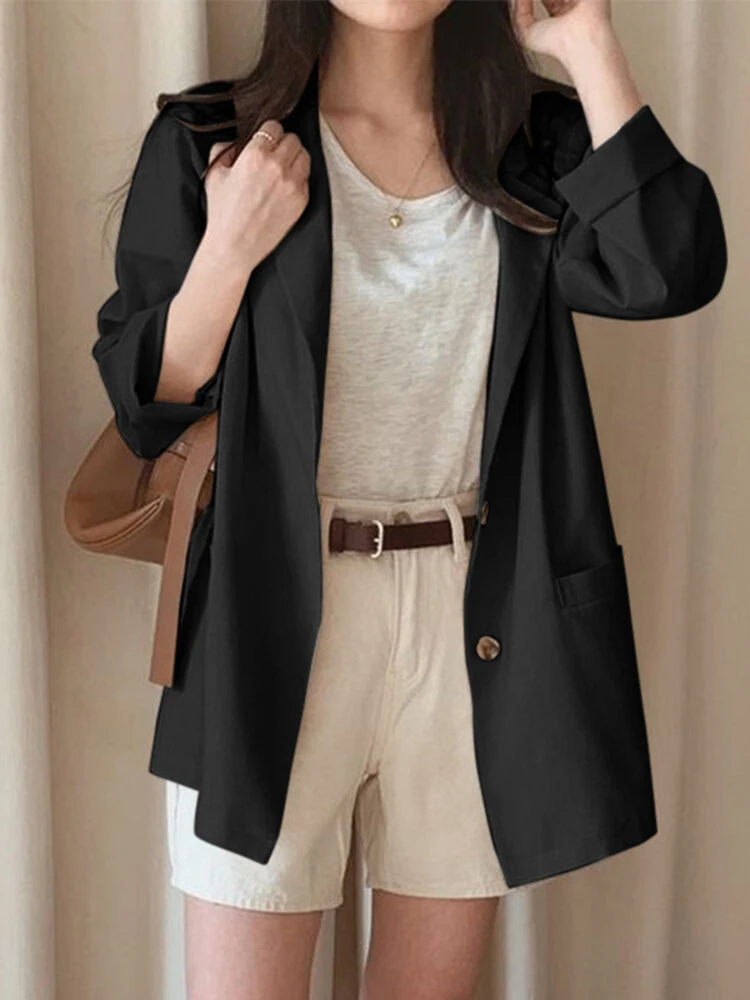 Be the first to review “Solid Lapel Long Sleeve Button Front Women Blazer” Cancel reply