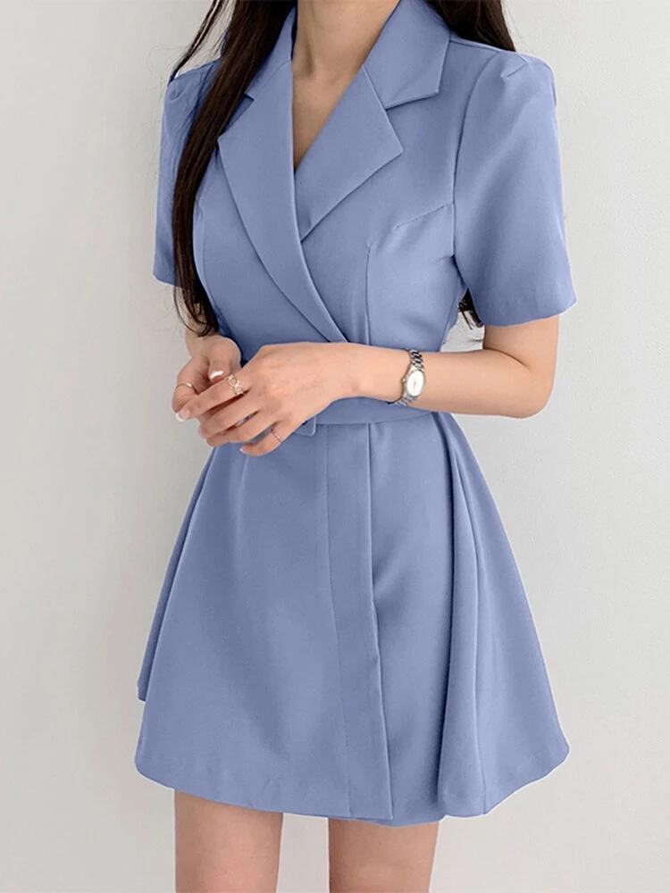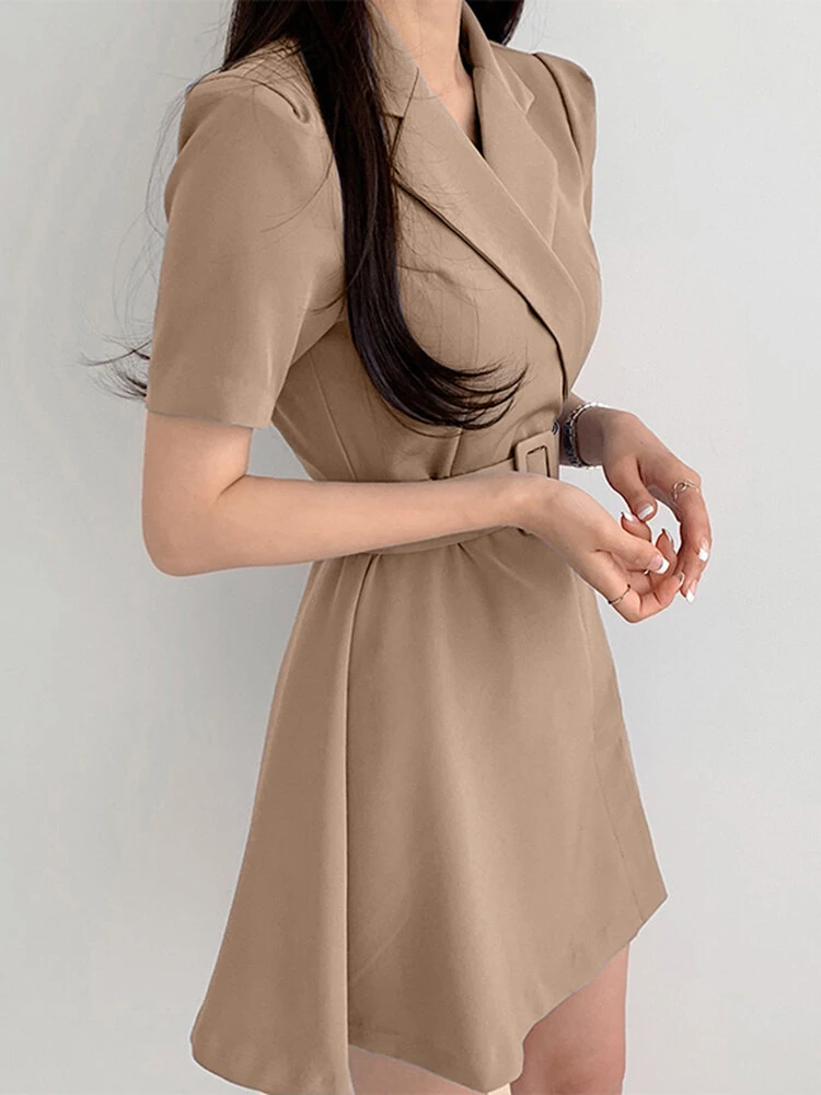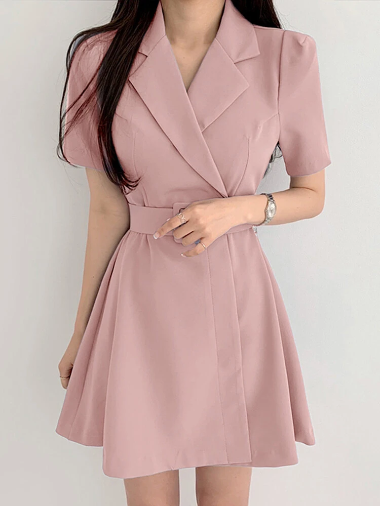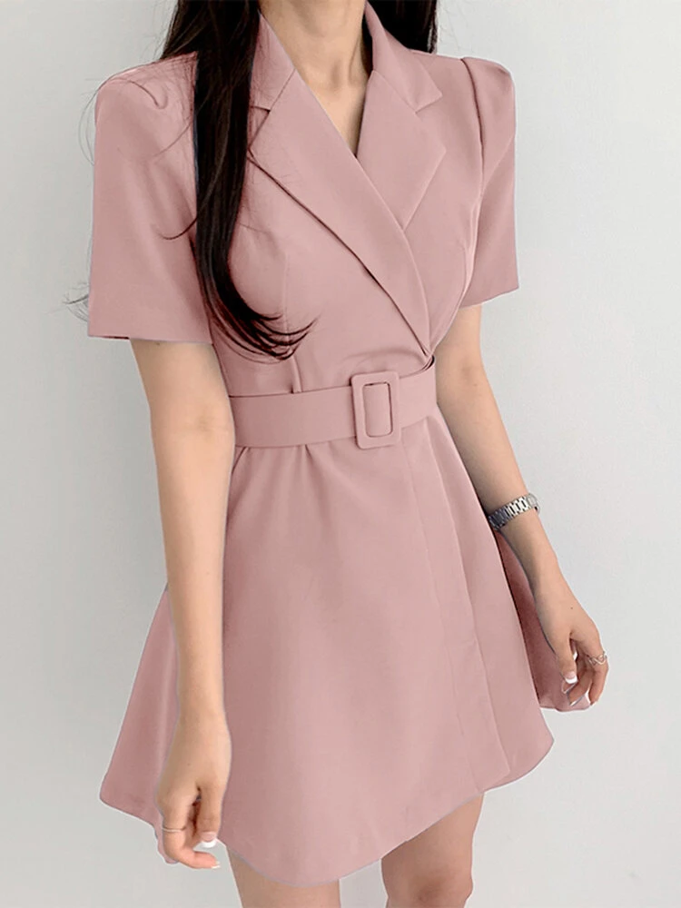 Color: Khaki, Black, Blue, Pink Style: Casual Occasion: Office chic Material: Polyester Pattern: Plain Season: Summer Collar: Lapel Collar Sleeves Length: Short Sleeve Package Included:1*Dress