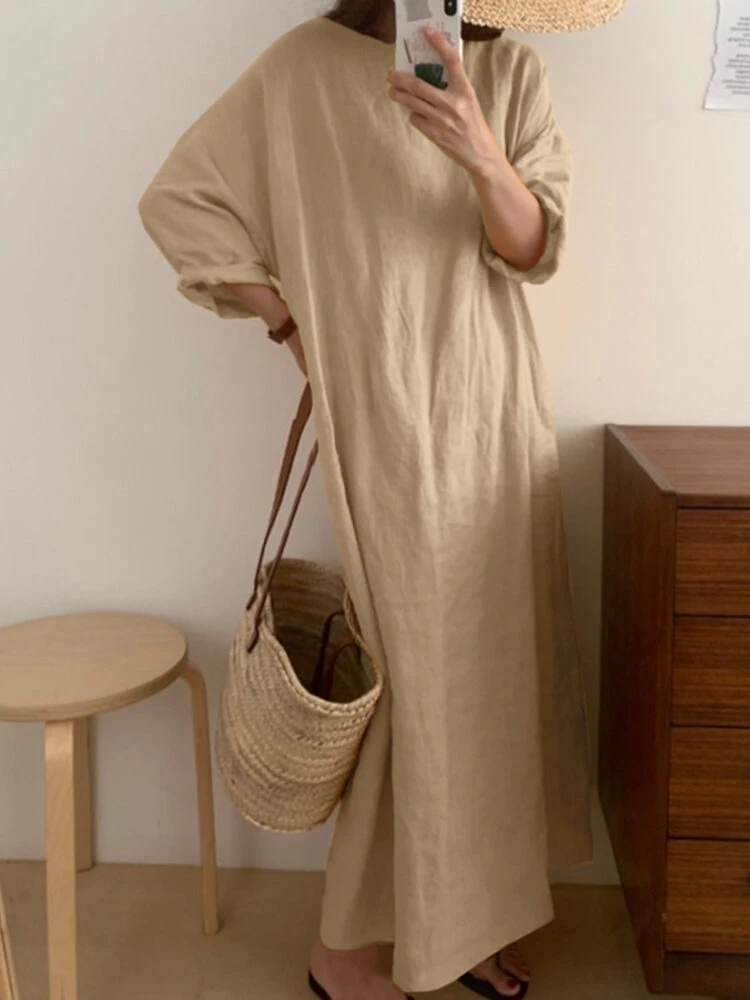 Be the first to review “Solid Long Sleeve Round Neck Casual Cotton Maxi Dress” Cancel reply