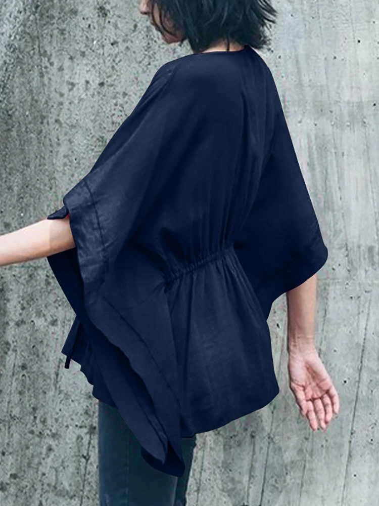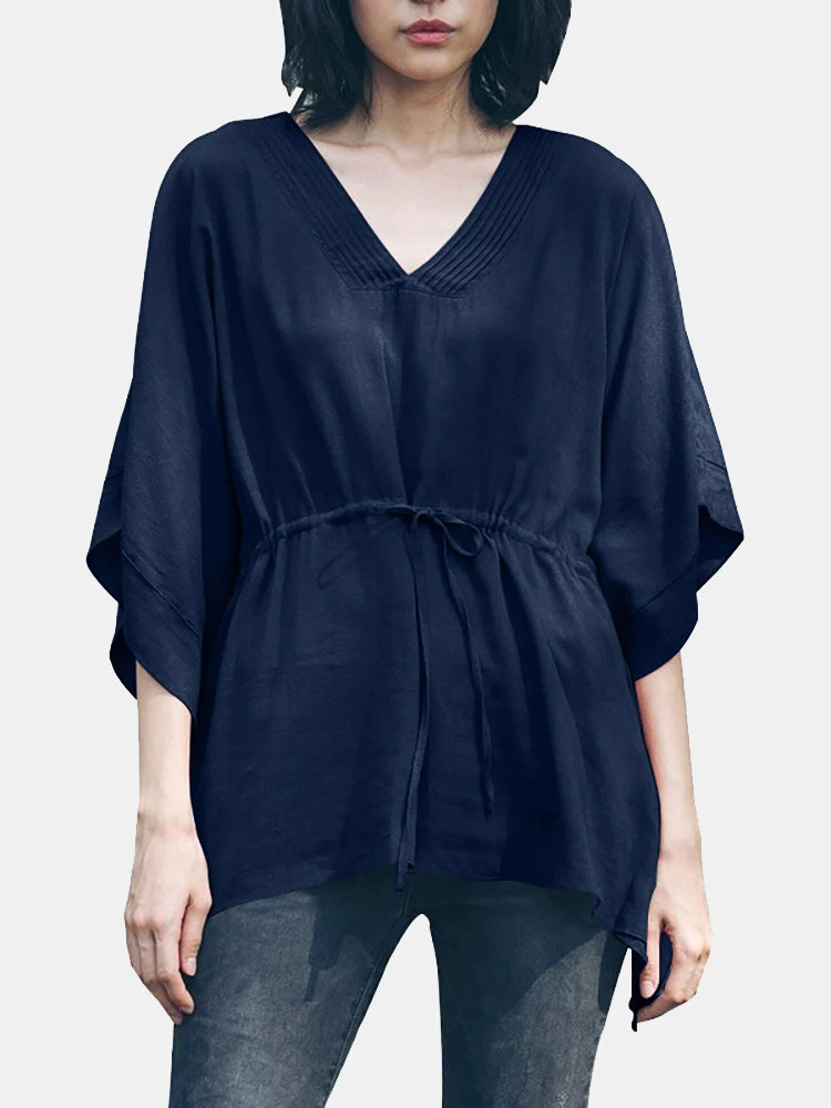 Be the first to review “Solid Loose Drawstring Waist V-neck Dolman Sleeve Blouse” Cancel reply