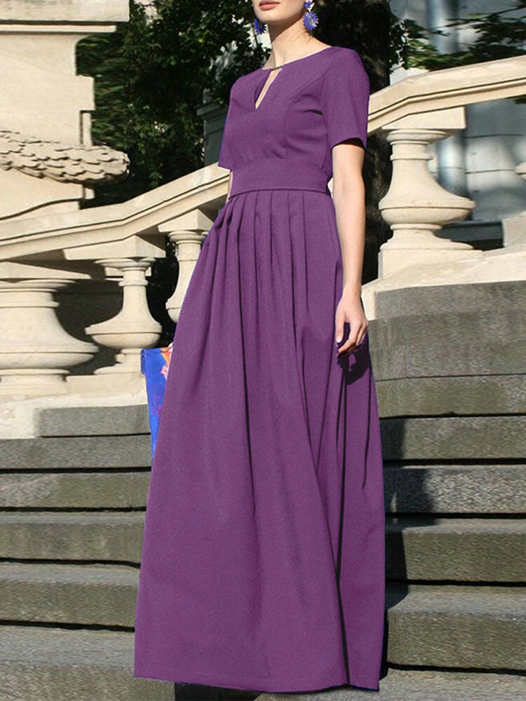 Color: Purple, Blue, Green, Wine red Style: Elegant Occasion: Party Material: Polyester Pattern: Plain Design Element: Pleated Season: Summer Sleeves Length: Short Sleeve Package Included:1*Dress