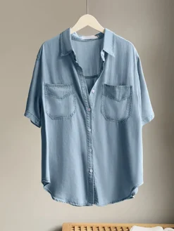 Be the first to review “Solid Pocket Button Lapel Short Sleeve Loose Denim Shirt” Cancel reply