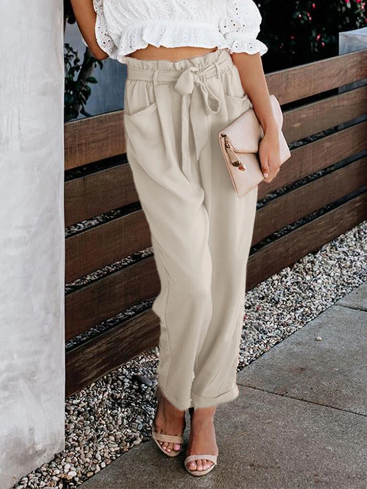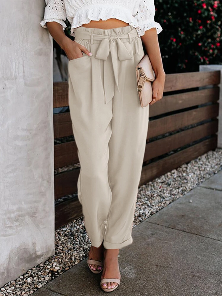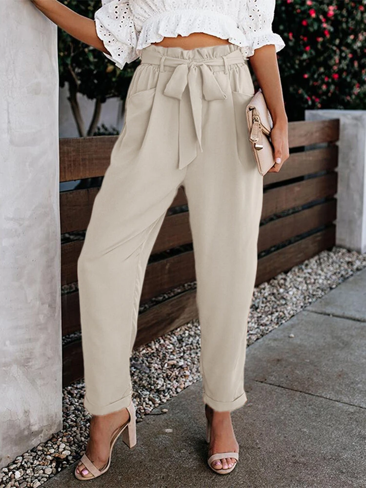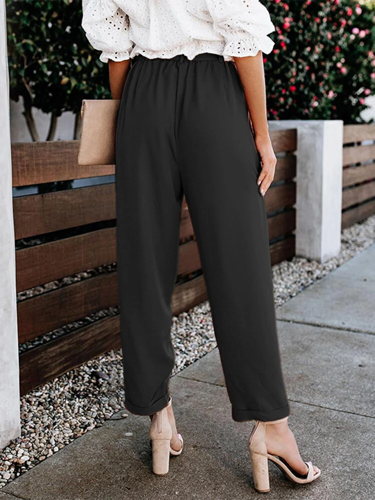 Be the first to review “Solid Pocket Elastic Waist Carrot Pants With Belt” Cancel reply
