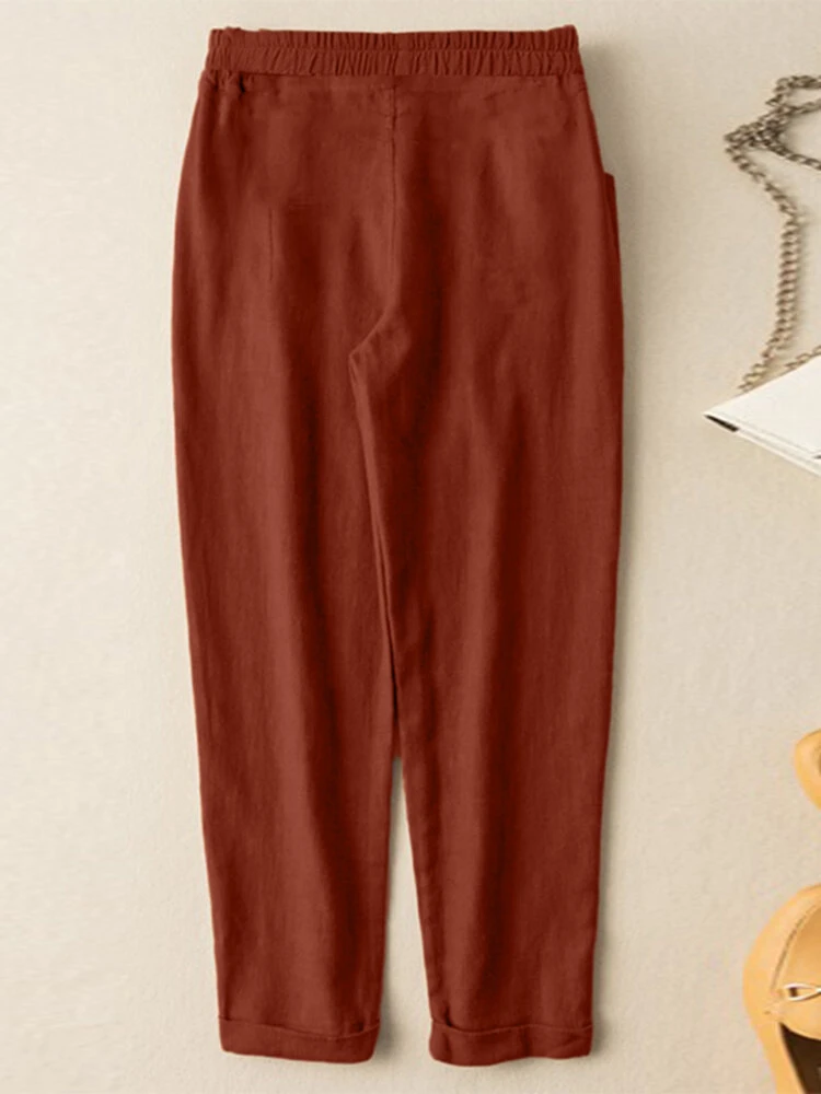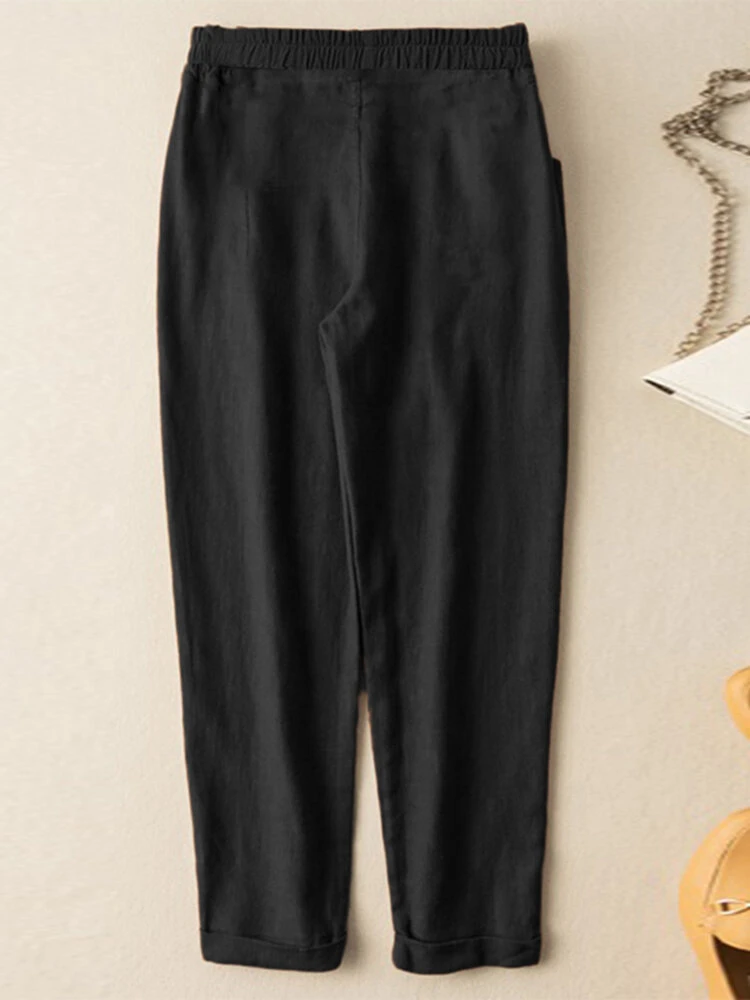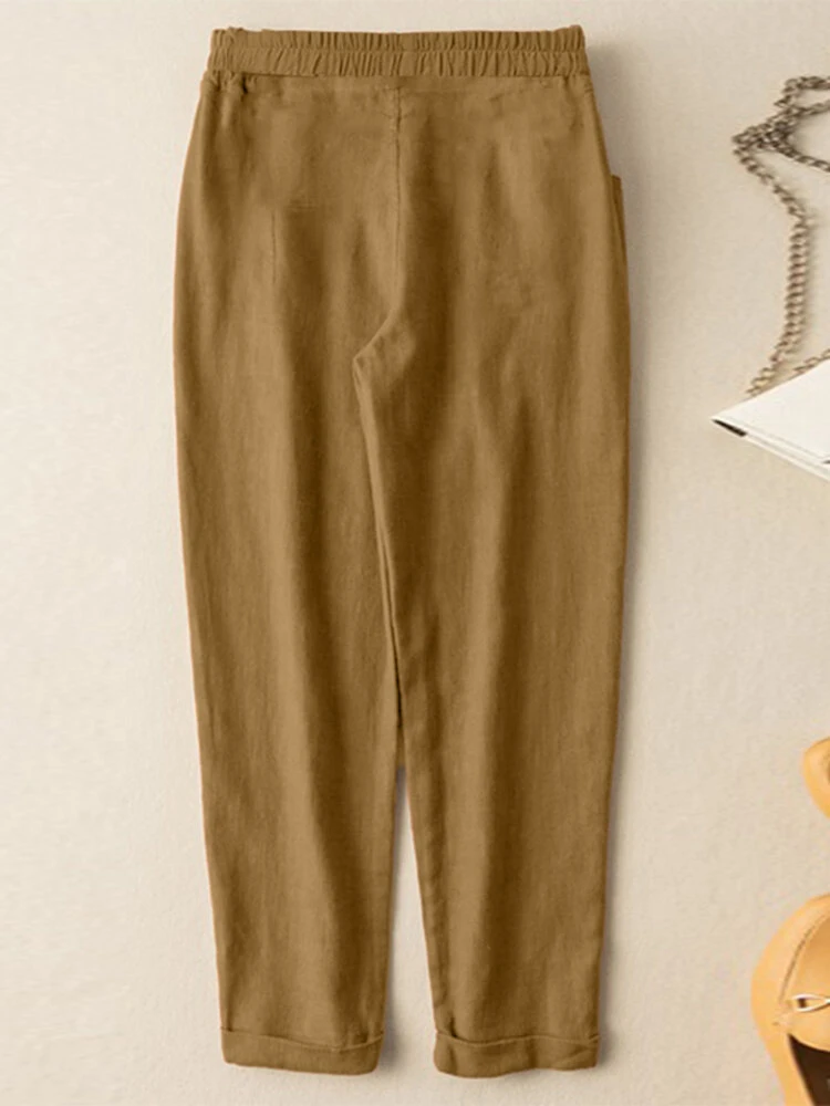 Color: Black, Khaki, Yellow Material: Linen, Cotton Pattern: Plain Occasion: Everyday Season: Summer, Spring, Autumn Design Element: Pocket Style: Casual Package Included:1*Pants