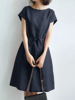 Be the first to review “Solid Pocket Short Sleeve Crew Neck Dress With Belt” Cancel reply