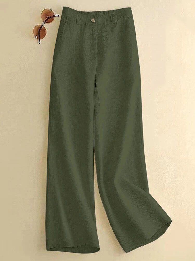Color: Black, Blue, Brown Material: Linen, Cotton Pattern: Plain Occasion: Everyday Season: Spring, Autumn Design Element: Pocket, Button Front Style: Casual Package Included:1*Pants