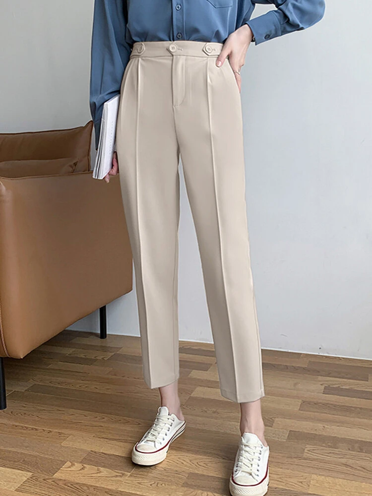 Color: Black, Gray, Apricot Material: Polyester Length: Cropped Pants Season: Summer, Spring, Autumn Design Element: Pocket Style: Casual Package Included:1*Pants