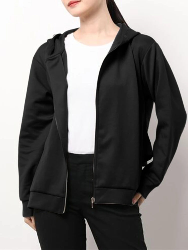 Be the first to review “Solid Ruffle Hem Back Zip Pocket Drawstring Hooded Jacket” Cancel reply