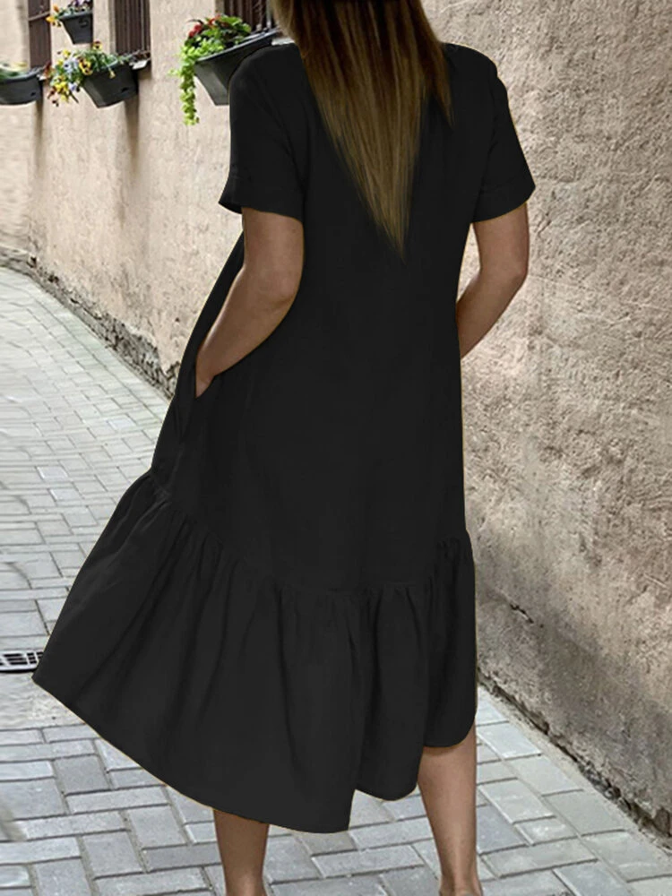 Solid Ruffle High-Low Hem Casual Cotton Midi Dress
