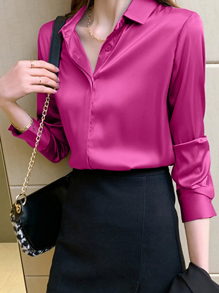 Color: Rose, White, Blue, Apricot Material: Polyester Pattern: Plain Occasion: Everyday Style: Casual Sleeves Length: Long Sleeve Collar: Lapel Collar Season: Autumn, Spring Design Element: Button Front Package Included:1*Shirt
