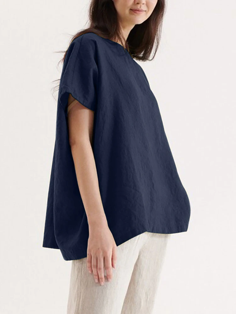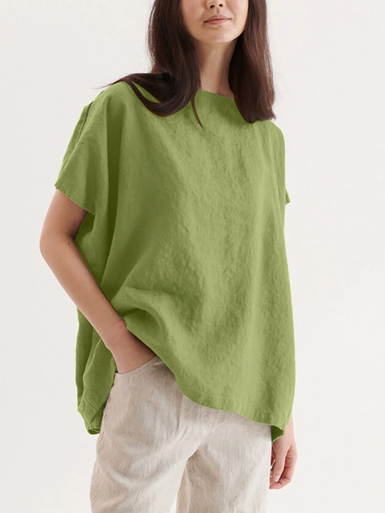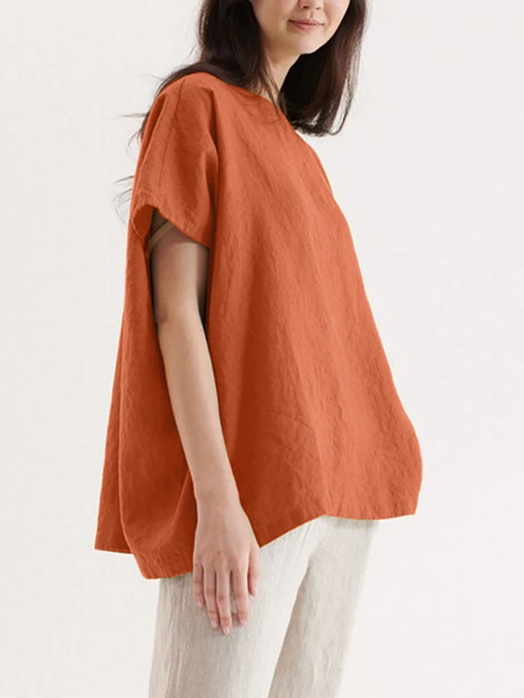 Color: Green, Navy, Orange, White Occasion: Everyday Material: Cotton, Linen Pattern: Plain Style: Casual Sleeves Length: Short Sleeve Collar: Crew Neck Fit Type: Loose Season: Summer Package Included:1*T-shirt