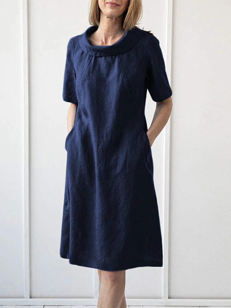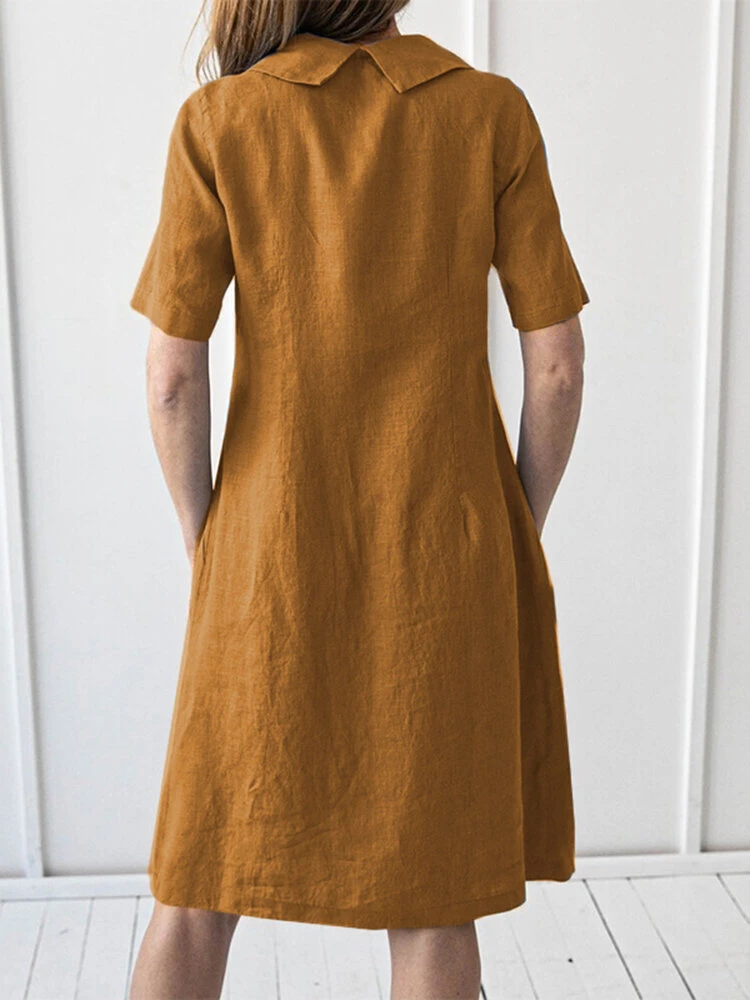 Solid Short Sleeve Pocket Lapel Dress For Women