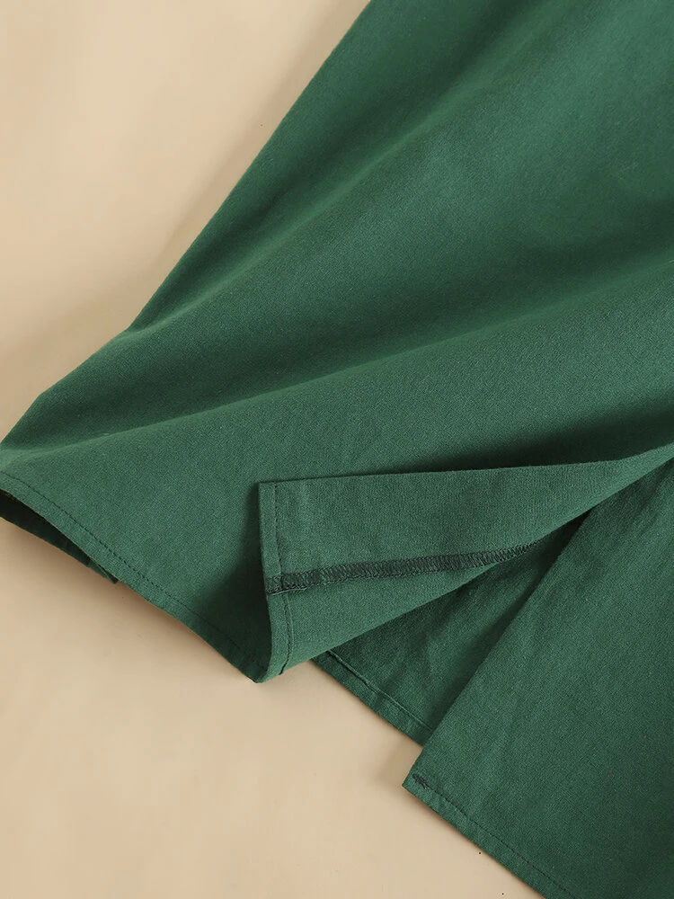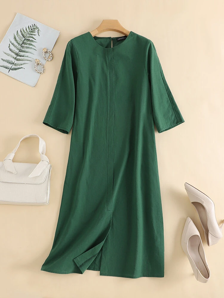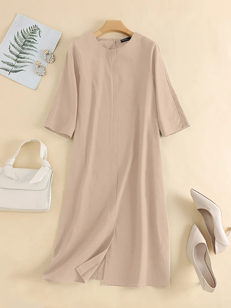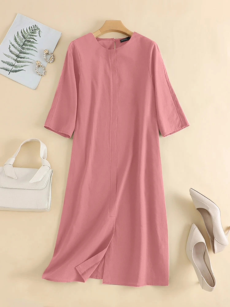 Color: Apricot, Blue, Green, Pink Style: Casual Material: Cotton, Linen Design Element: Pocket Season: Summer Hem Design: Slit Hem Sleeves Length: Half Sleeve Package Included:1*Dress