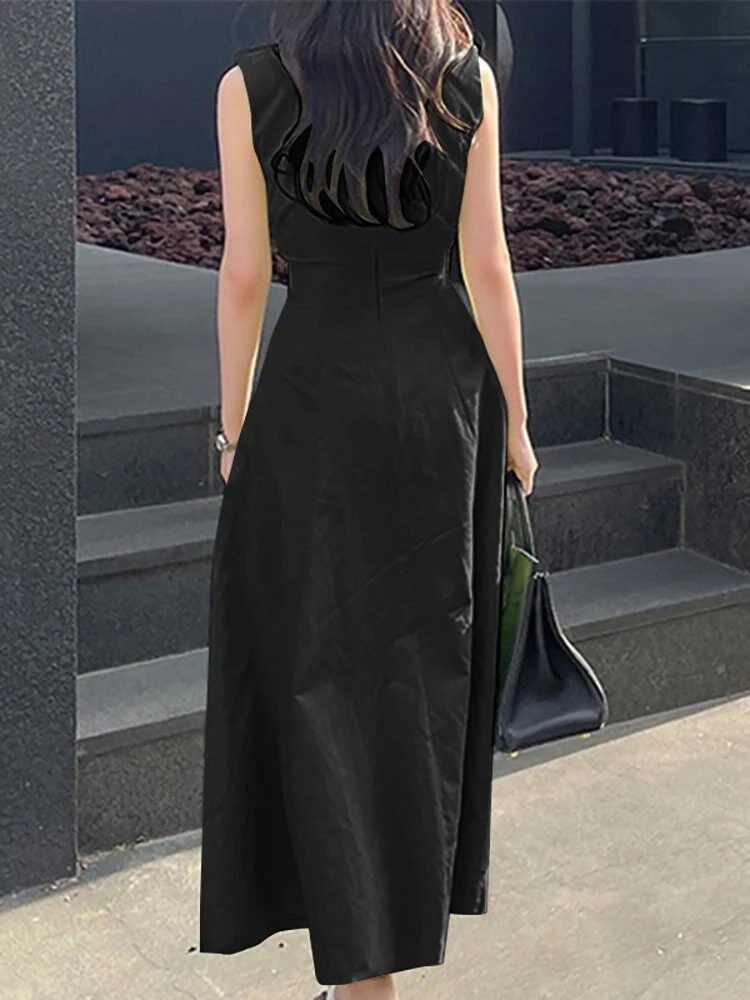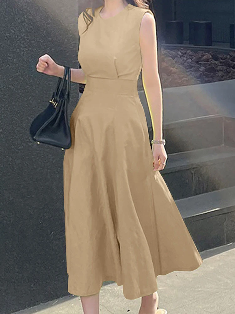 Solid Sleeveless A-line Swing Crew Neck Women Dress