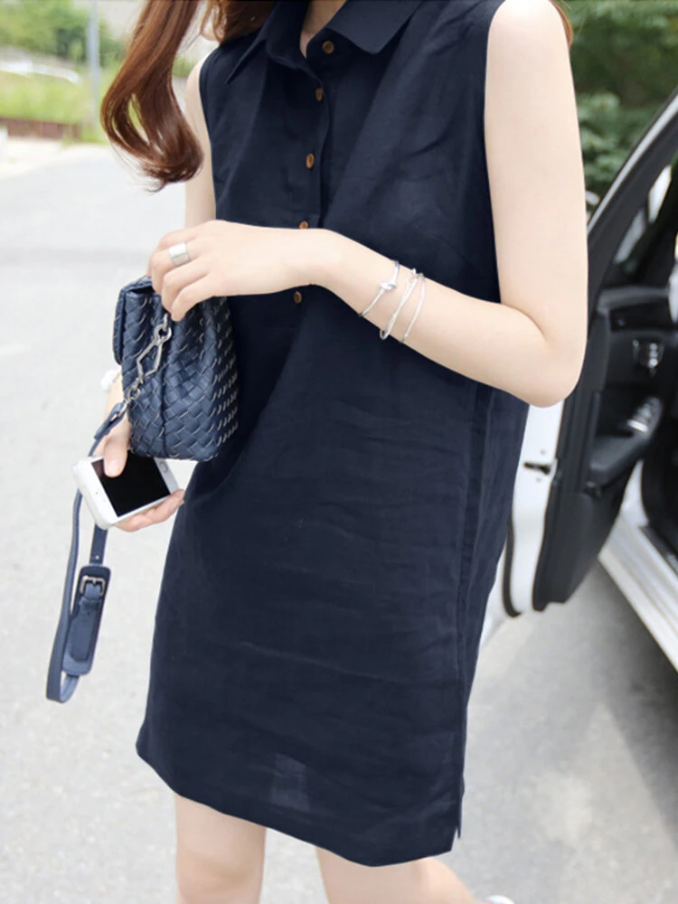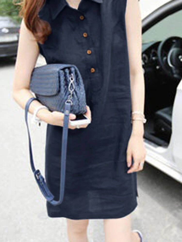 Be the first to review “Solid Sleeveless Button Front Lapel Dress For Women” Cancel reply