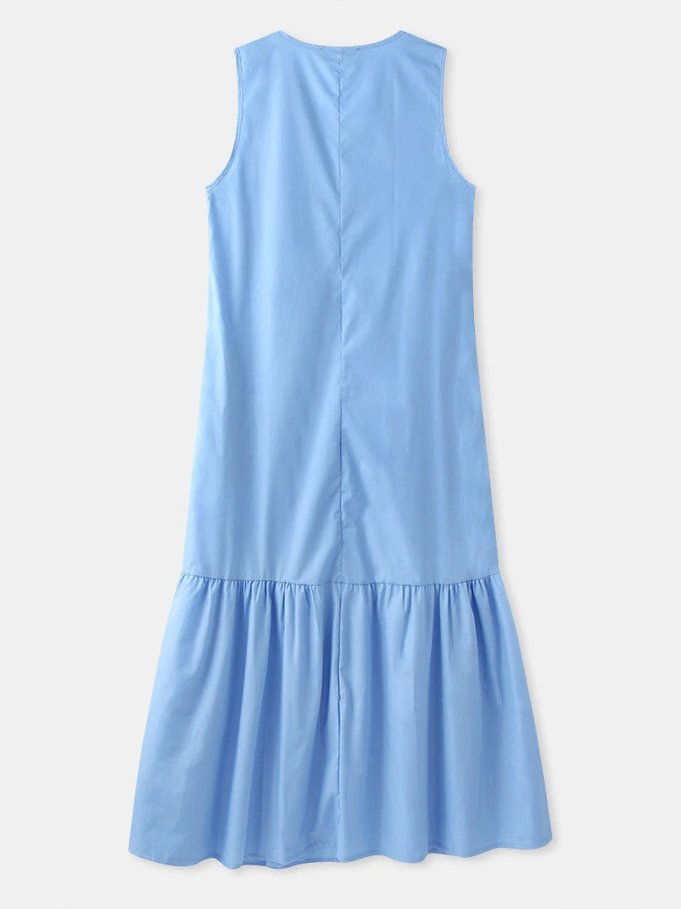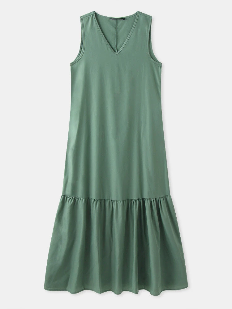 Color: Black, Green, Blue Occasion: Casual Sleeves Length: Sleeveless Season: Summer Material: Cotton Design Element: Ruffle hem Package included:1*Dress