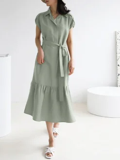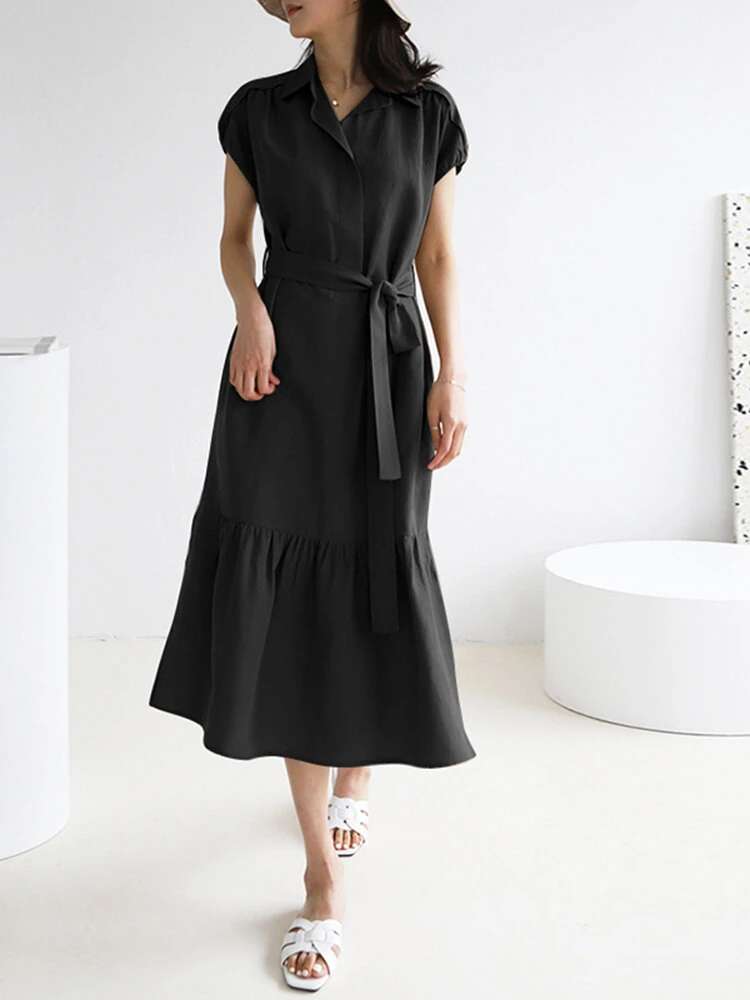 Be the first to review “Solid Slit Pocket Lapel Short Sleeve Dress With Belt” Cancel reply