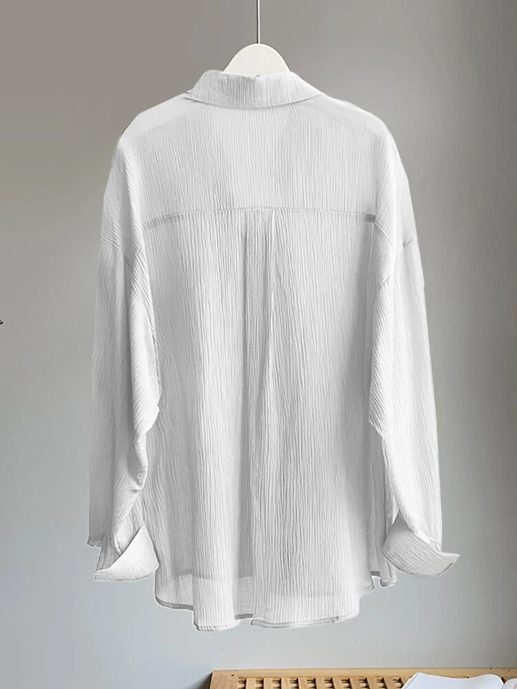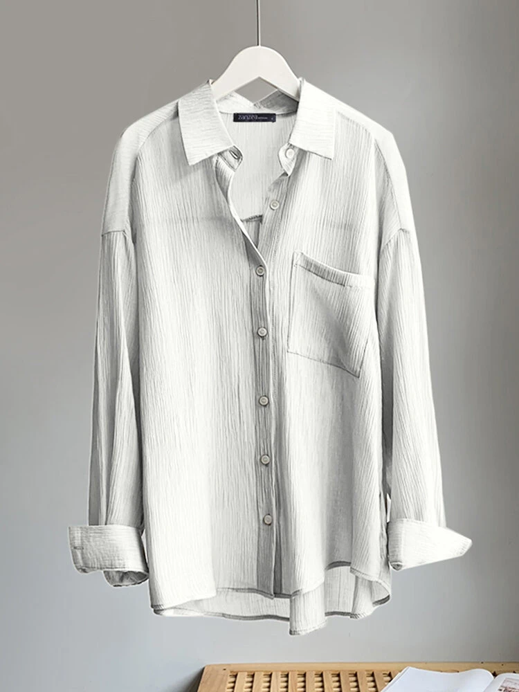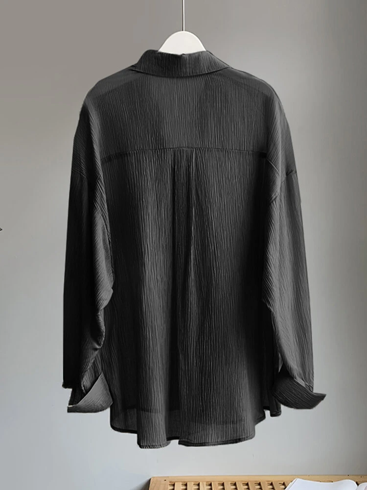 Solid Textured Pocket Button Long Sleeve Lapel Shirt