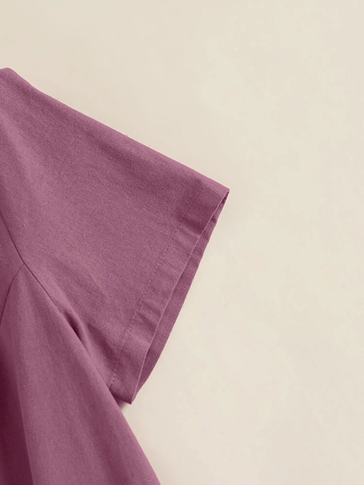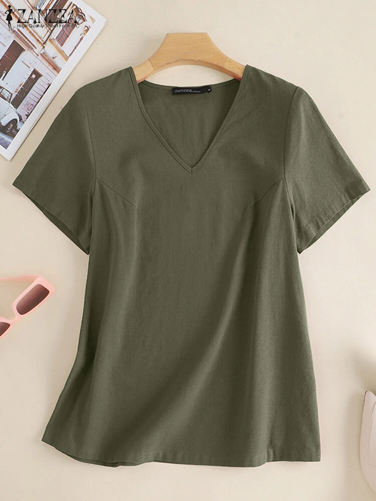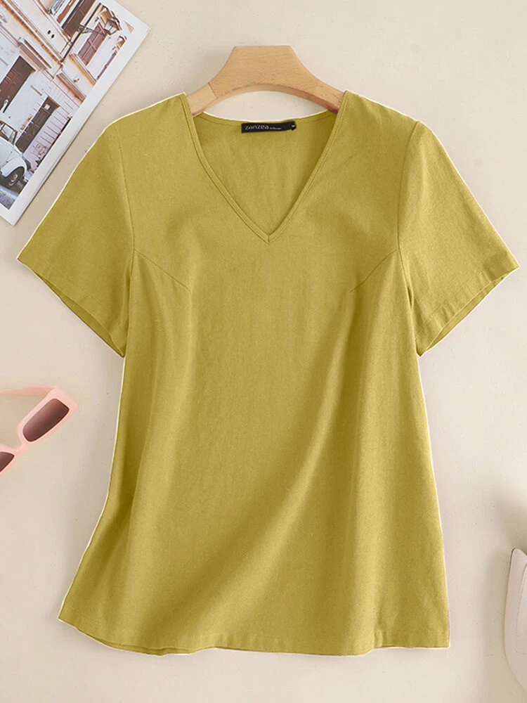 Color: Yellow, Navy, Claret, Army Green Occasion: Everyday Material: Cotton, Linen Pattern: Plain Style: Casual Sleeves Length: Short Sleeve Collar: V-neck Season: Summer Package Included:1*T-shirt