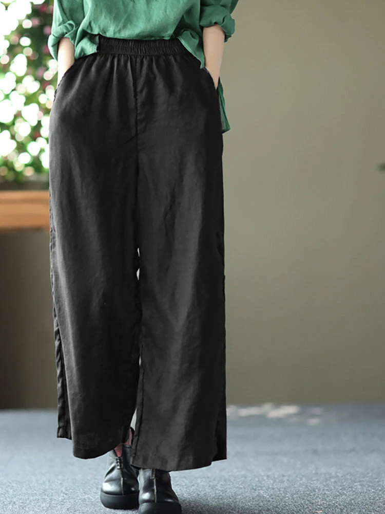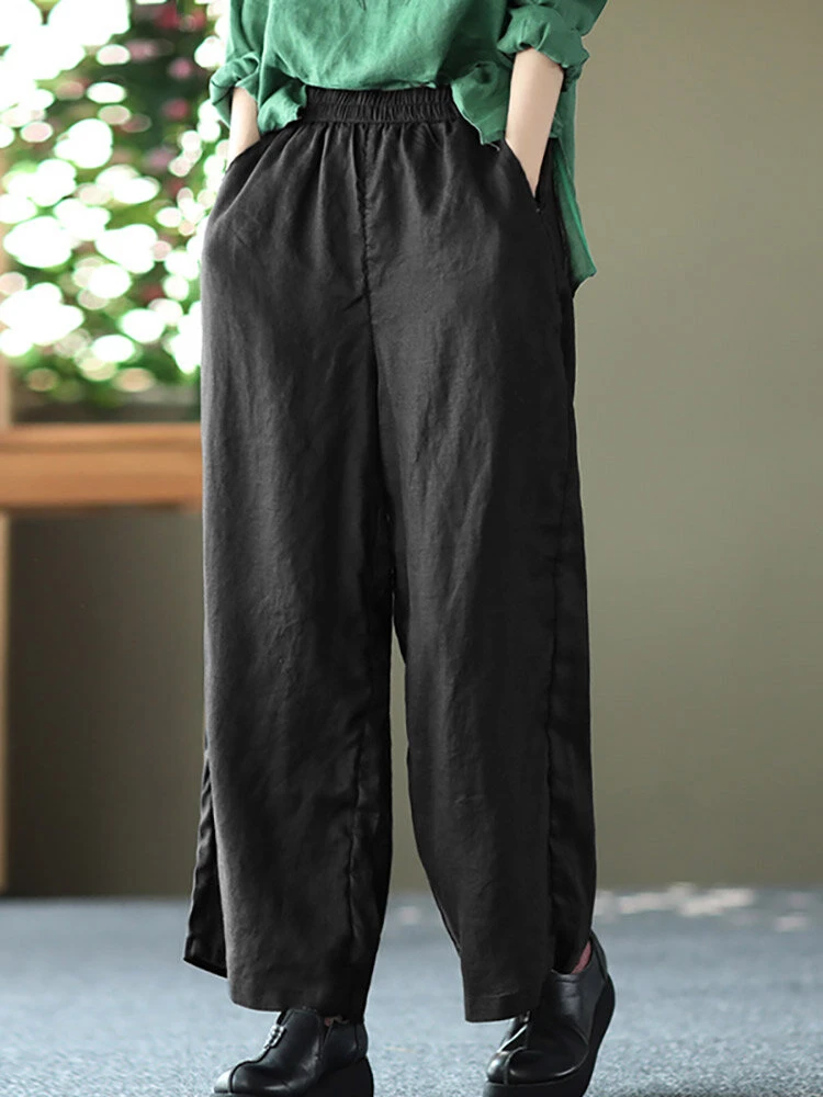 Be the first to review “Solid Wide Leg Pocket Elastic Waist Cotton Pants” Cancel reply