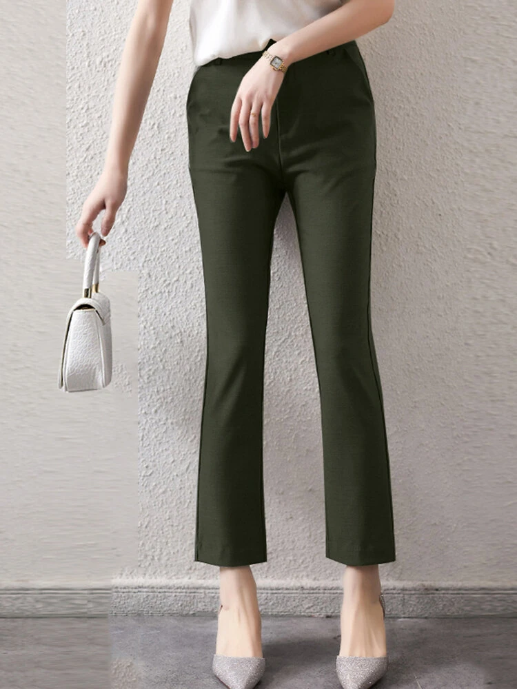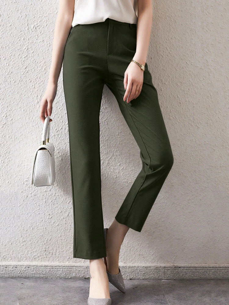 Color: Black, Gray, Green, Apricot Material: Polyester Pattern: Plain Occasion: Office chic Season: Summer, Spring, Autumn Design Element: Zip Front Style: Elegant Package Included:1*Pants