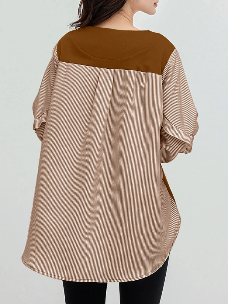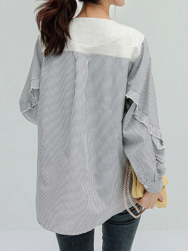 Be the first to review “Stripe Patchwork High-low Long Sleeve Crew Neck Blouse” Cancel reply