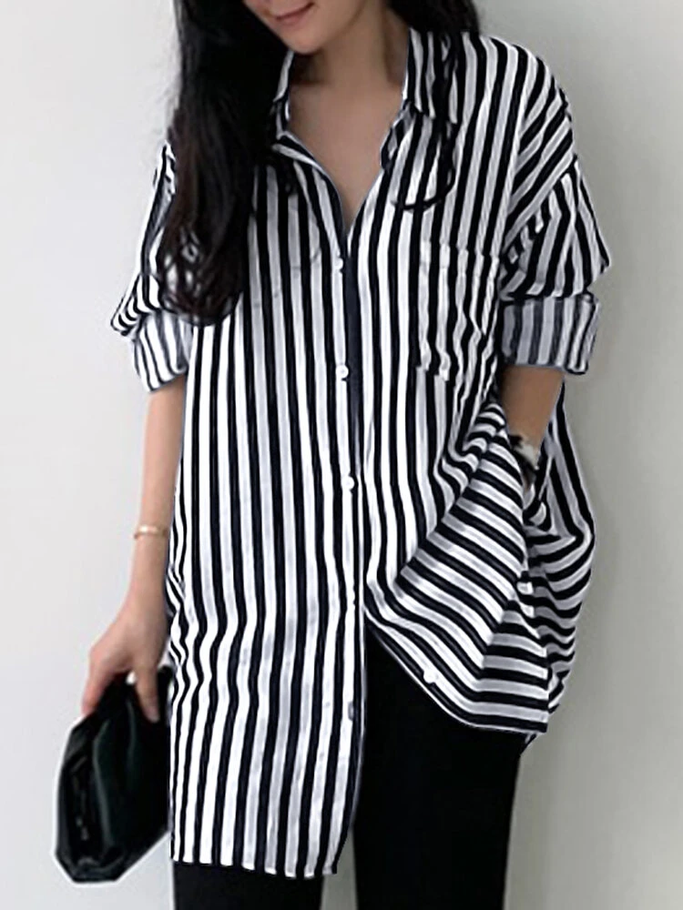 Be the first to review “Stripe Pattern Loose Lapel Button Long Sleeve Shirt” Cancel reply