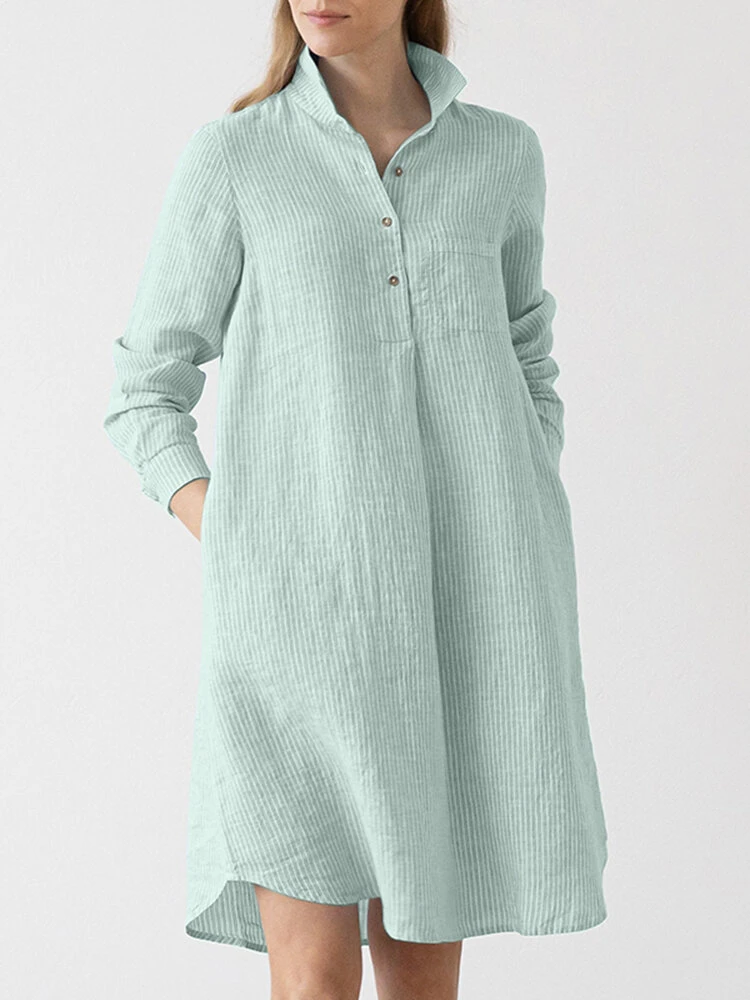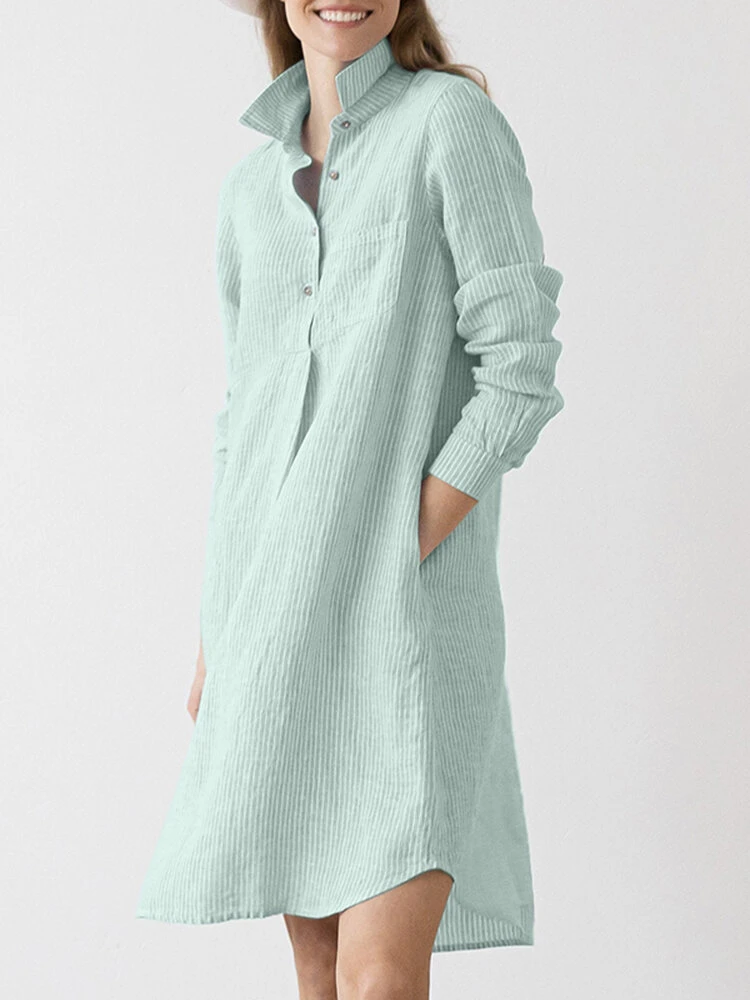 Color: Black, Blue, Green Style: Casual Occasion: Everyday Material: Polyester Pattern: Striped Design Element: Pocket, Button Front Season: Autumn Collar: Lapel Collar Hem Design: Curved Hem Sleeves Length: Long Sleeve Package Included:1*Dress